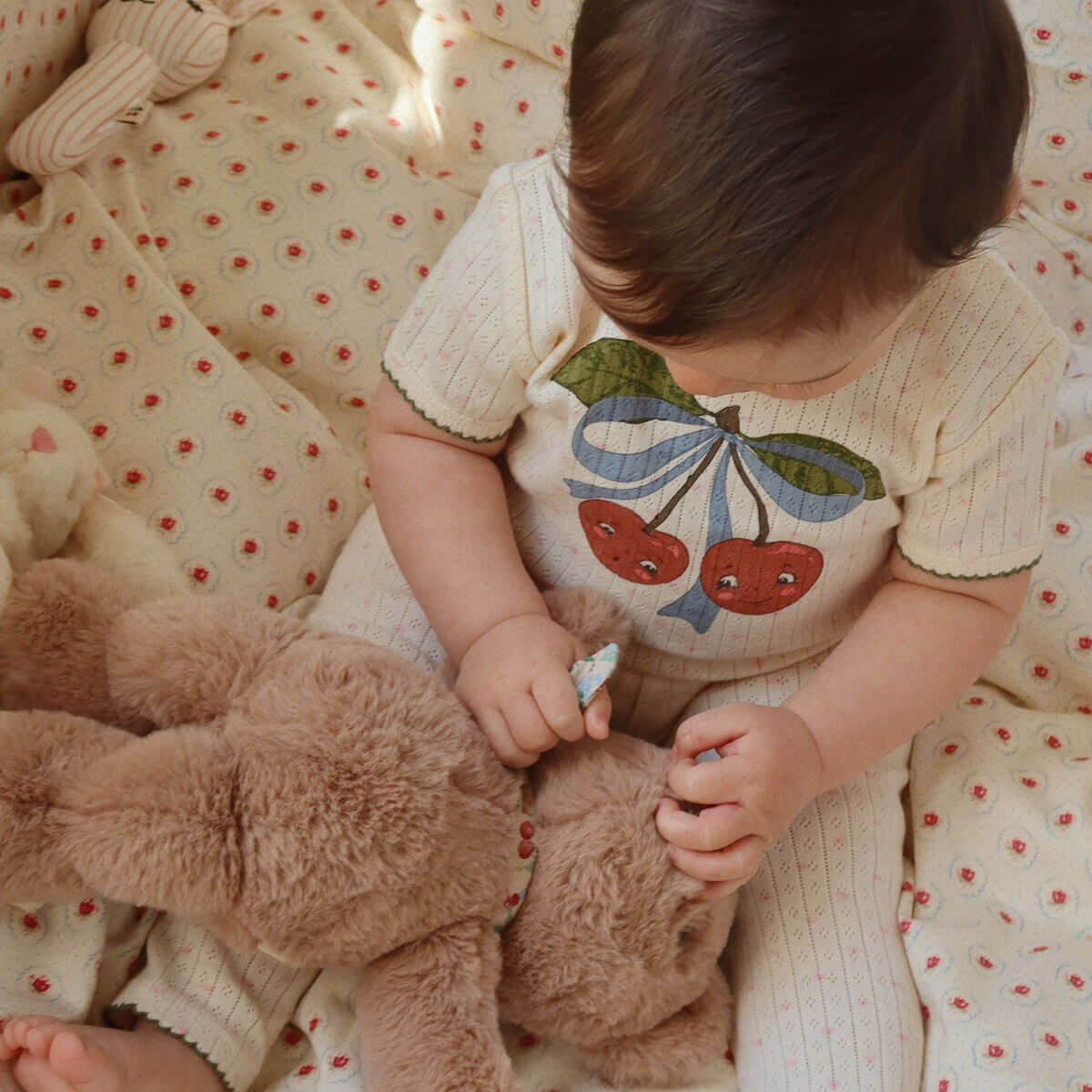 The New Society SS26 collection Sweet is a return to softness, to presence, to emotion, to what truly matters. It’s a collection born from a longing to reconnect with what’s essential: love, simplicity, and that quiet kind of beauty that stays with you. There is strength in sensitivity. There is power in the things that whisper instead of shout. Sweet is about creating space for feeling and for moments that move us, for the poetry in the everyday. Lived through a child’s wonder, Sweet is pure emotion, pure love. A celebration of real childhood: playful, expressive and vibrant, with textures and prints that move with them, never too much, always just enough.