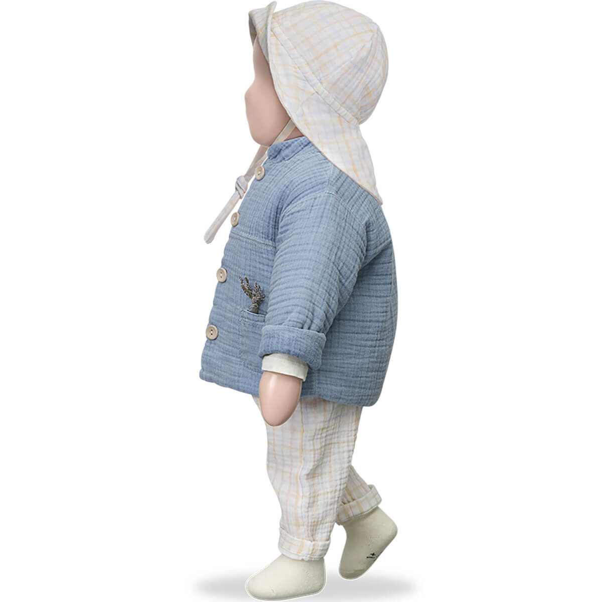 Adriano Jacket by 1+ in the Family. Padded long-sleeve baby jacket with large wooden buttons and front pockets.