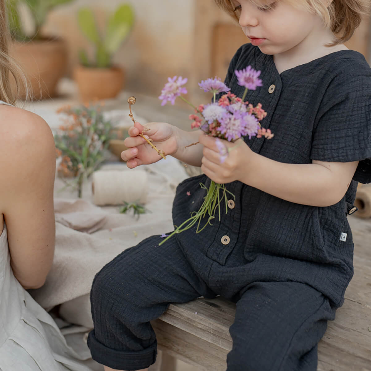 Adriano Short Sleeve Overall in Anthracite by 1+ in the Family - Last One In Stock - 12 Months