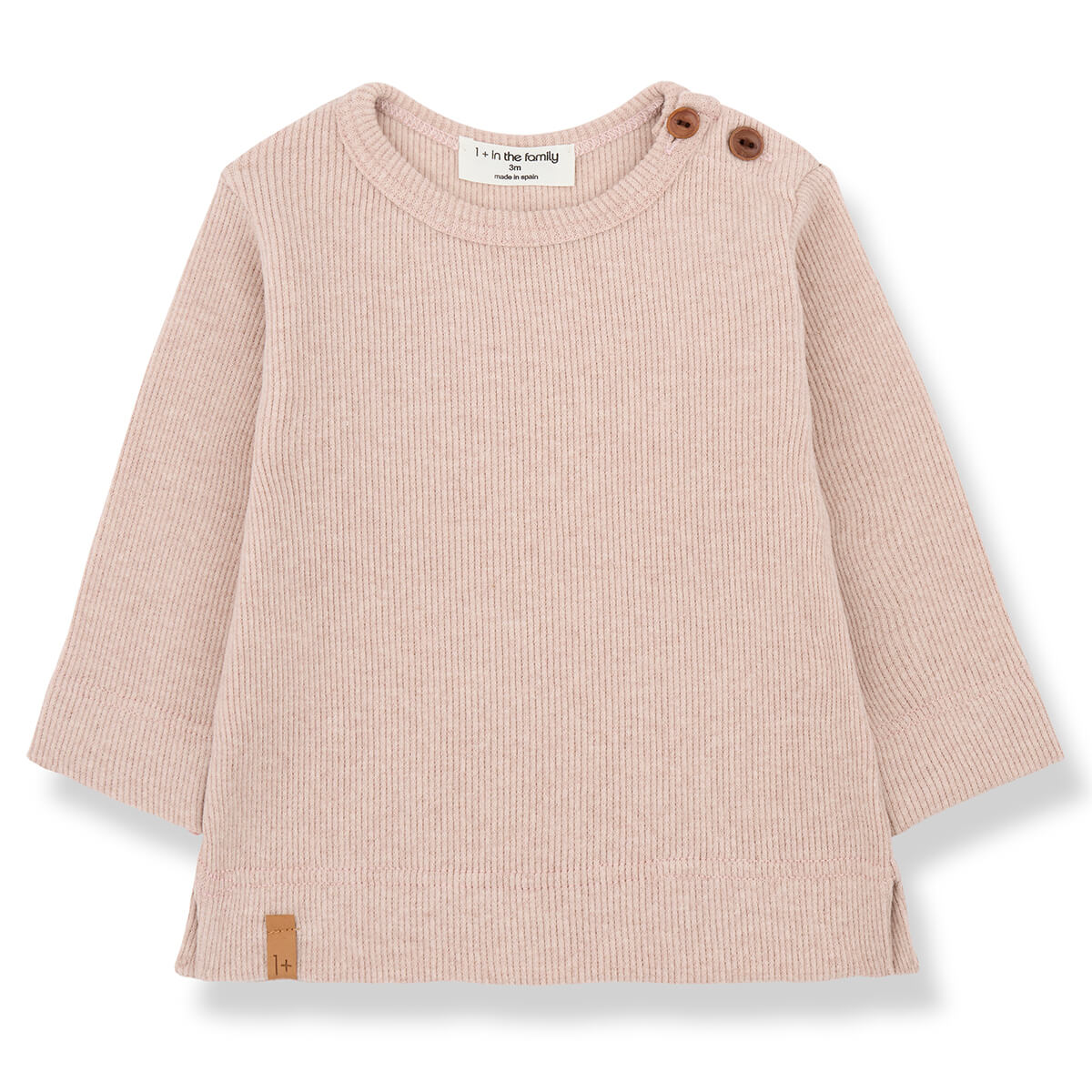 Alfons Top by 1+ in the Family. Long sleeve t-shirt in a soft ribbed jersey fabric with wooden button detailing.