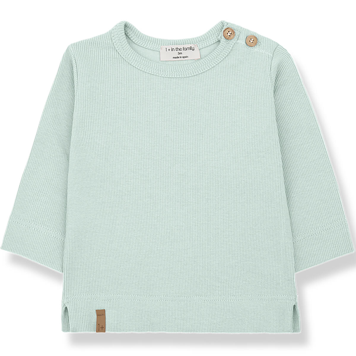 Alfons Top by 1+ in the Family. Long-sleeve t-shirt in a soft ribbed jersey fabric with wooden button detailing.