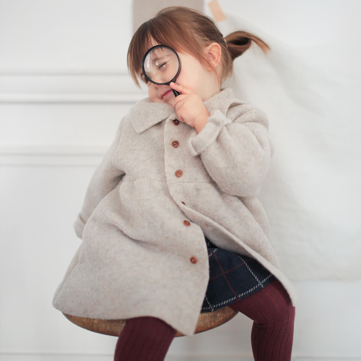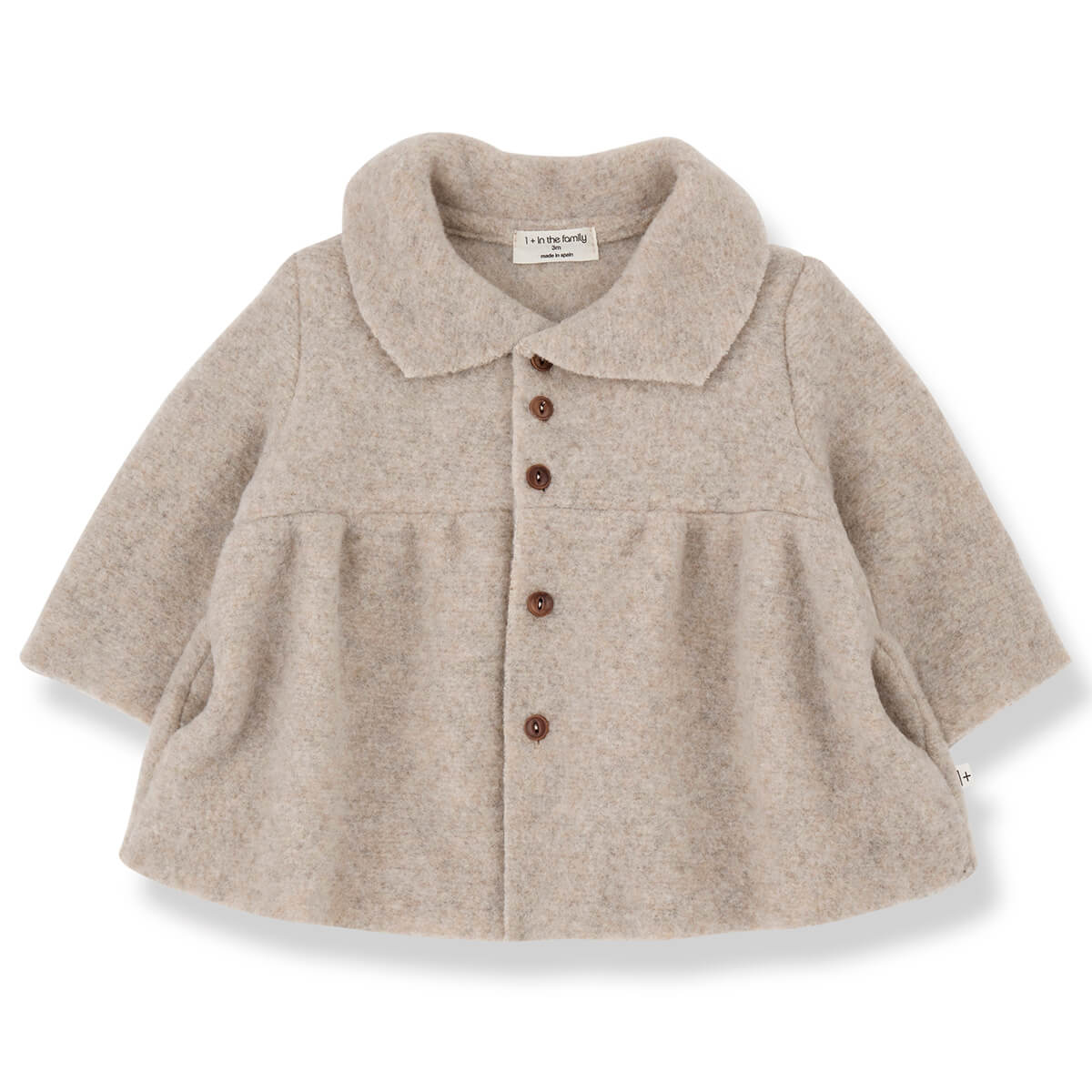 Anne Jacket by 1+ in the Family. Cosy wool baby coat with a sweet collar and wooden buttons.