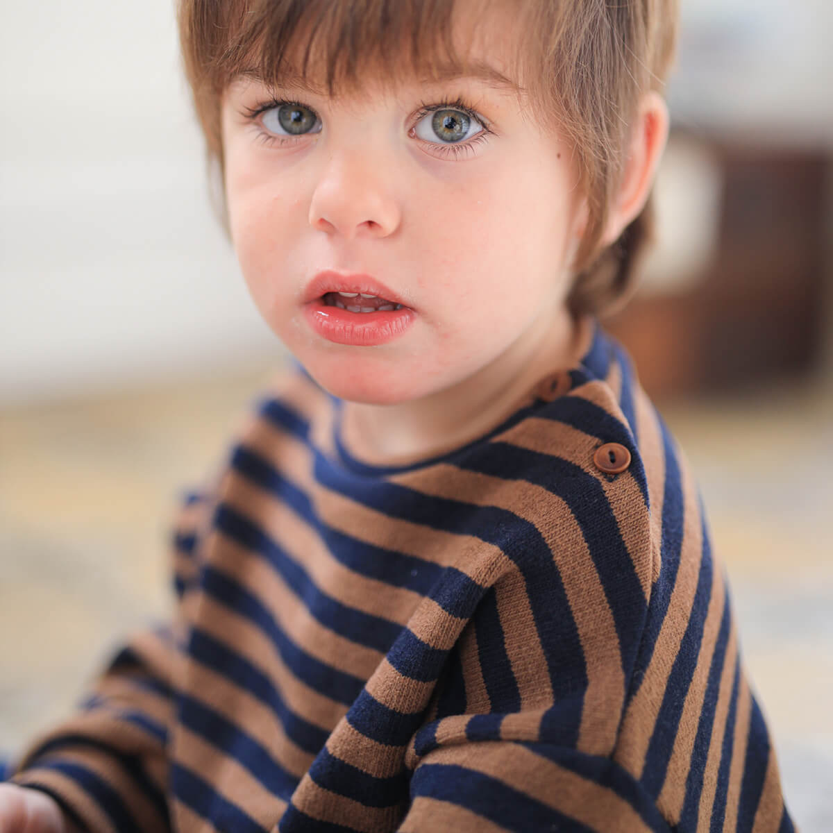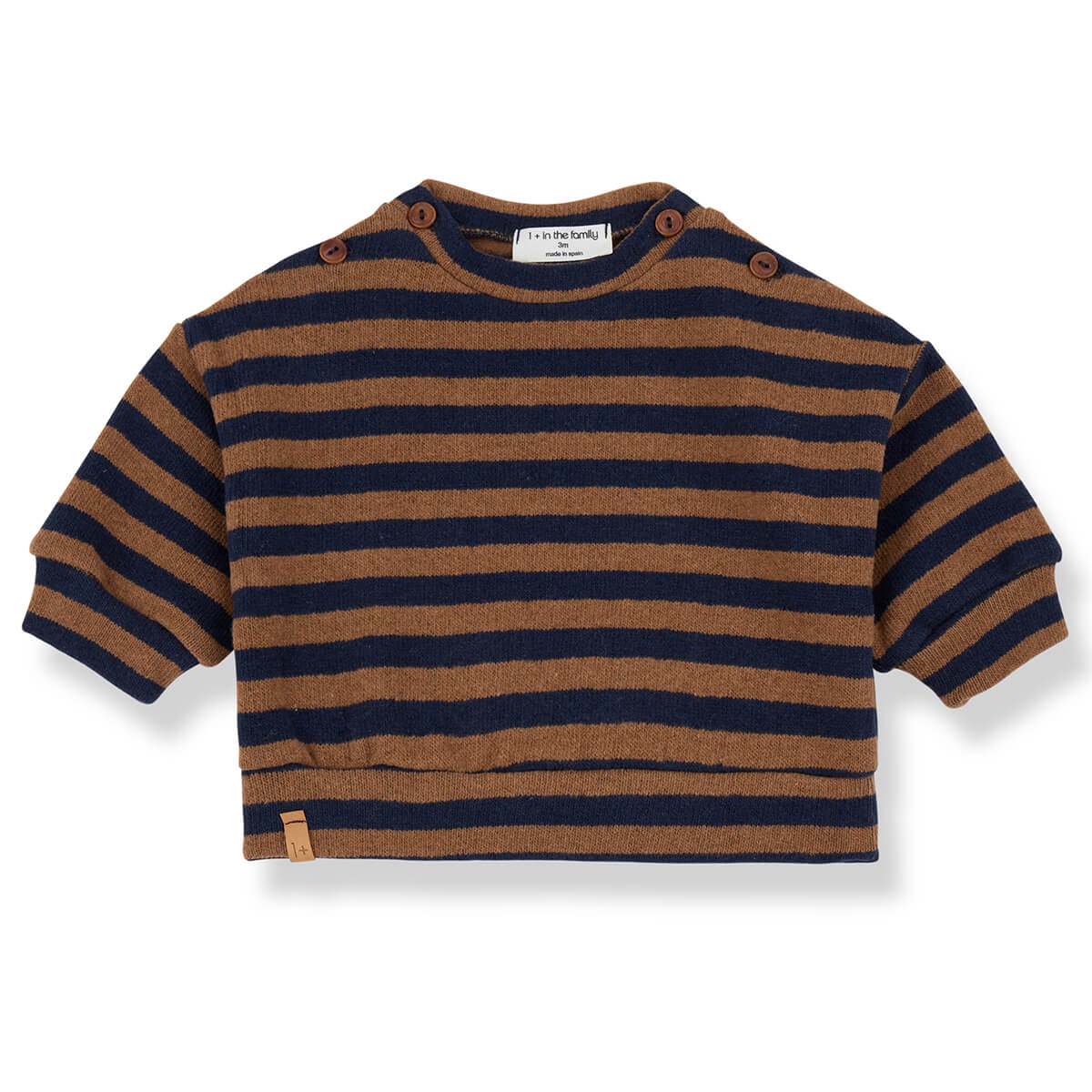 Dirk Sweatshirt by 1+ in the Family. Soft striped jersey sweatshirt with wooden button details on the shoulders.