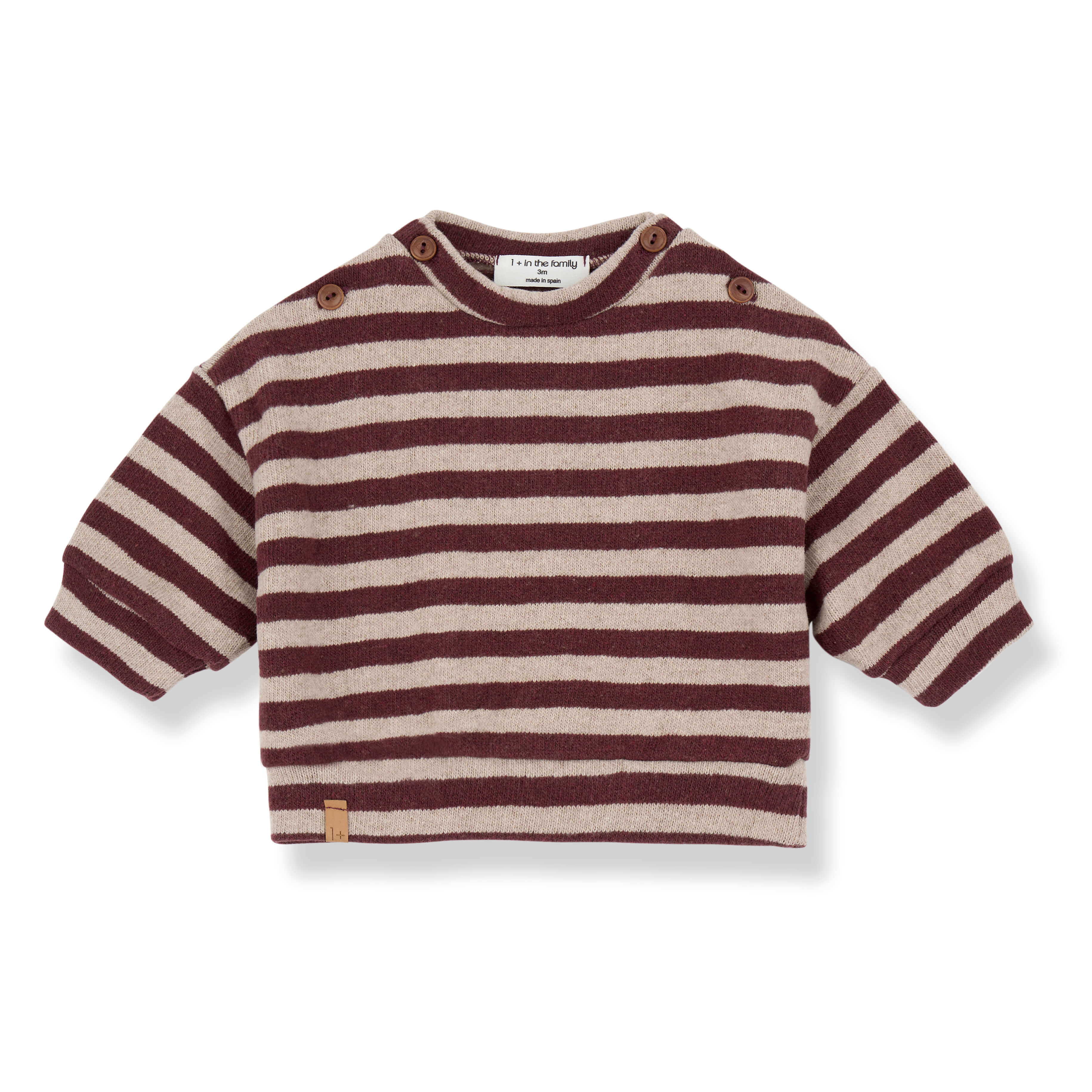 Dirk Sweatshirt by 1+ in the Family. Soft striped jersey sweatshirt with wooden button details on the shoulders.