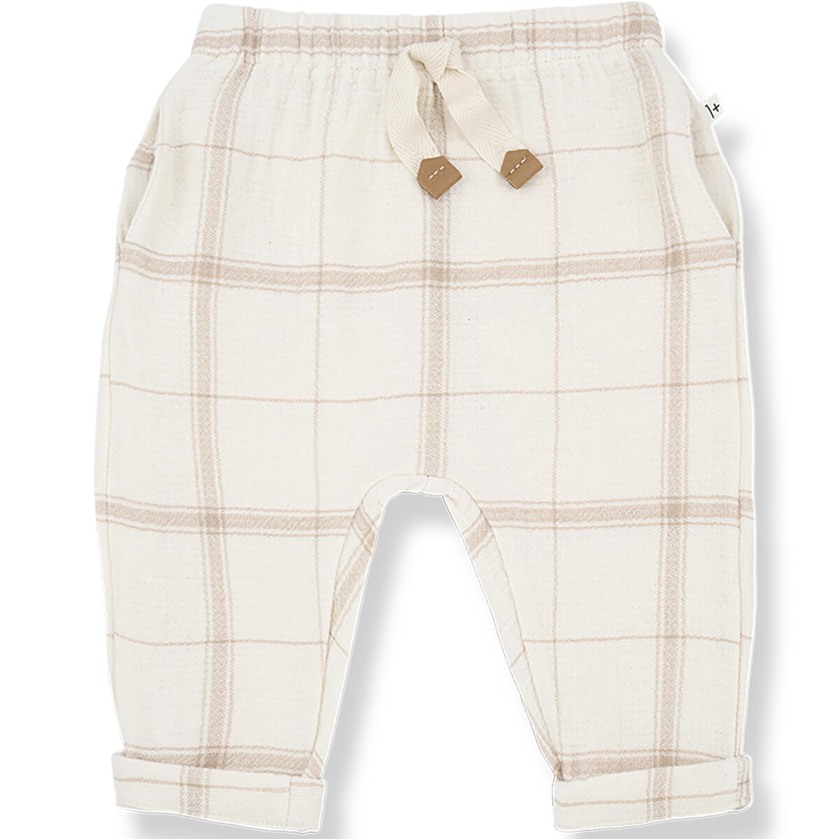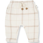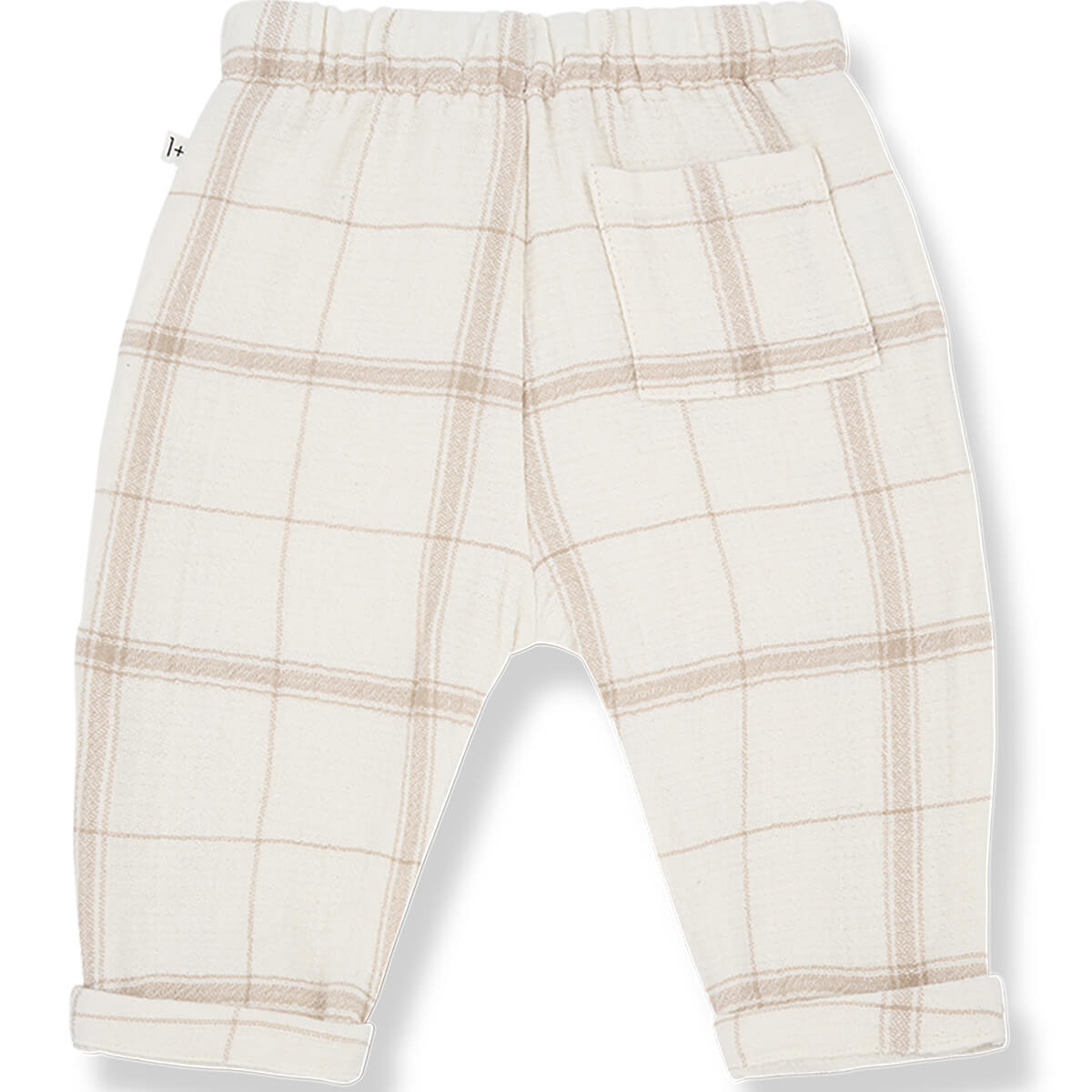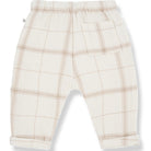 Icaro Pants by 1+ in the Family. Soft baby trousers in a checked double face fabric. With drawstring waist, ankle cuffs and pockets.