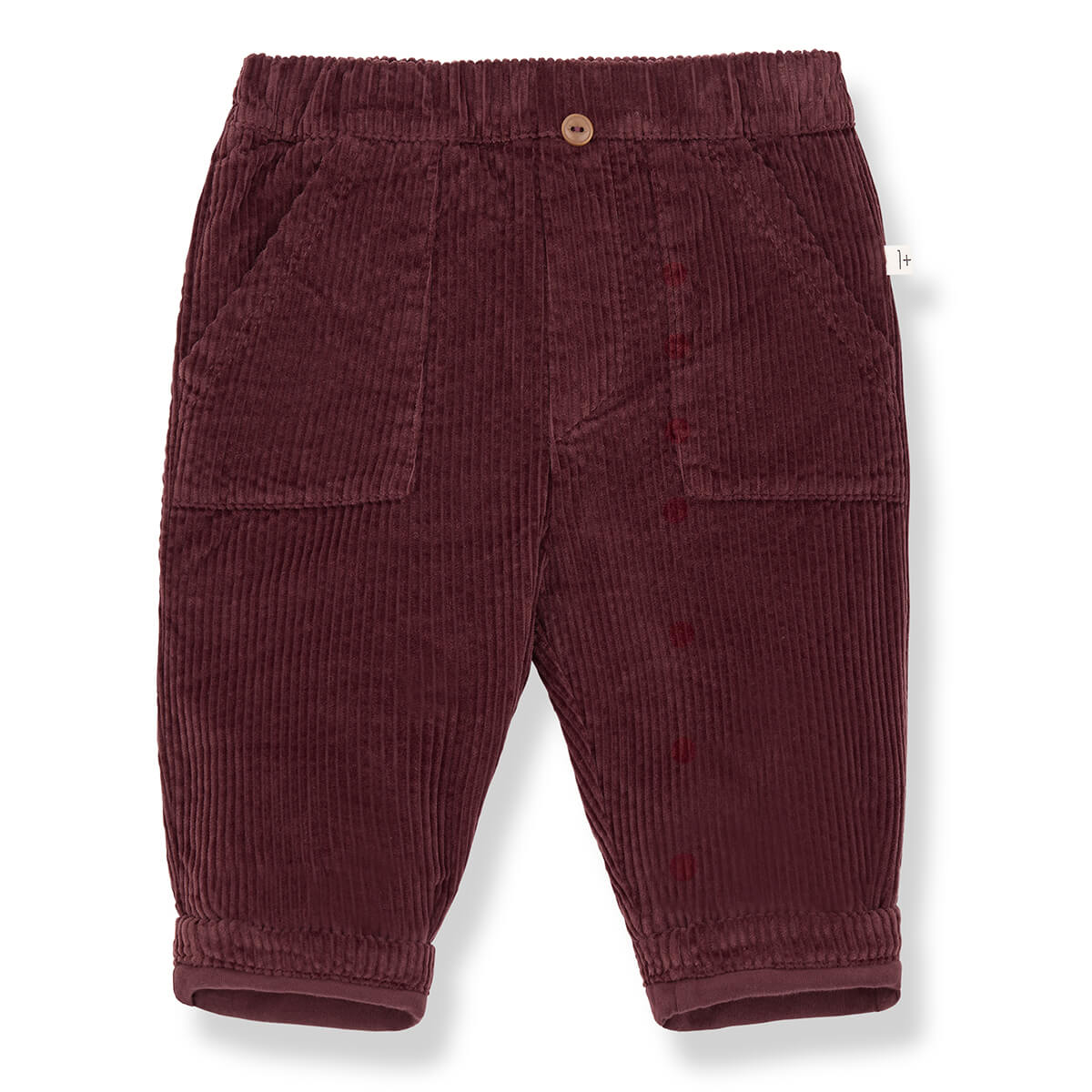 Louis Pants by 1+ in the Family. Corduroy baby trousers with an elasticated waist, front pockets and button fastening.