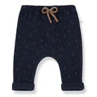 Nora Pants by 1+ in the Family. Soft baby trousers in a cosy fleece with an elasticated waist and tie detail.