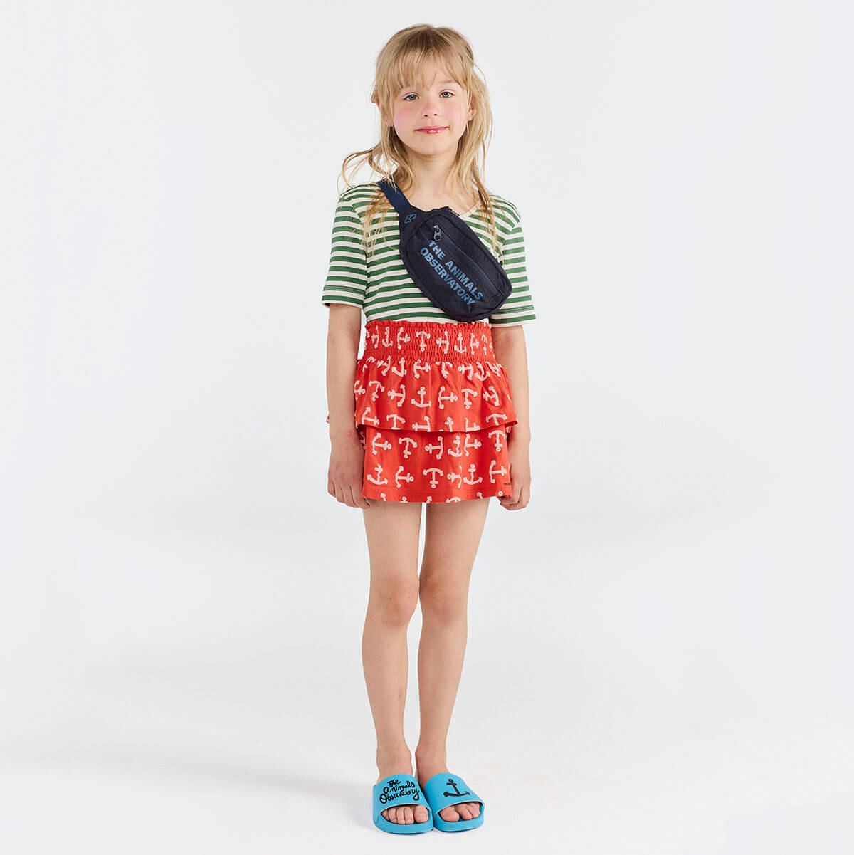 Kiwi Kid Skort by The Animals Observatory. Inspired by seaside escapes, this anchor-printed skort adds lively rhythm to every step, offering breathable comfort and bold spirit. An uplifting choice among modern cool kids clothing pieces.