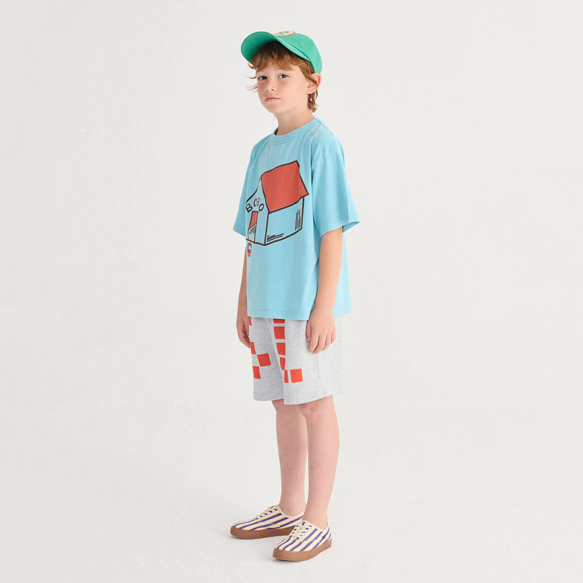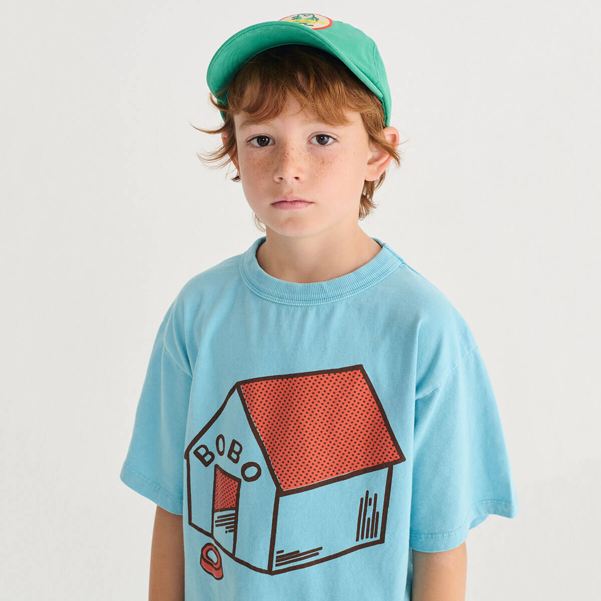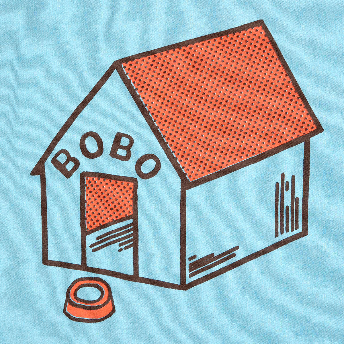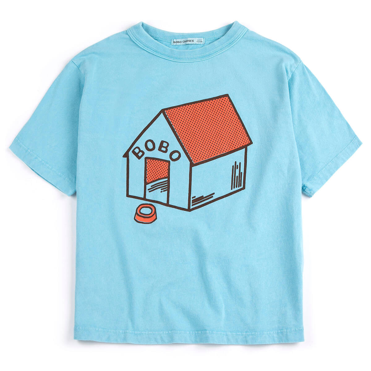 Pickles Is At Home T-Shirt by Bobo Choses. Light blue loose-fit tee with short sleeves and a round neck, featuring Bobo Choses dog house print.
