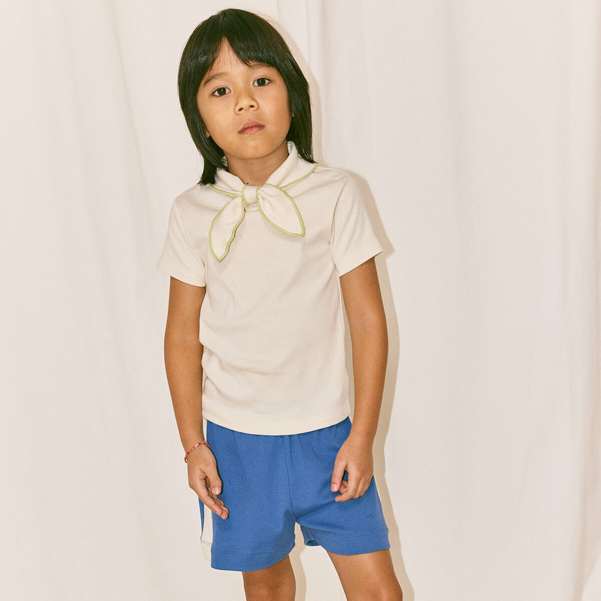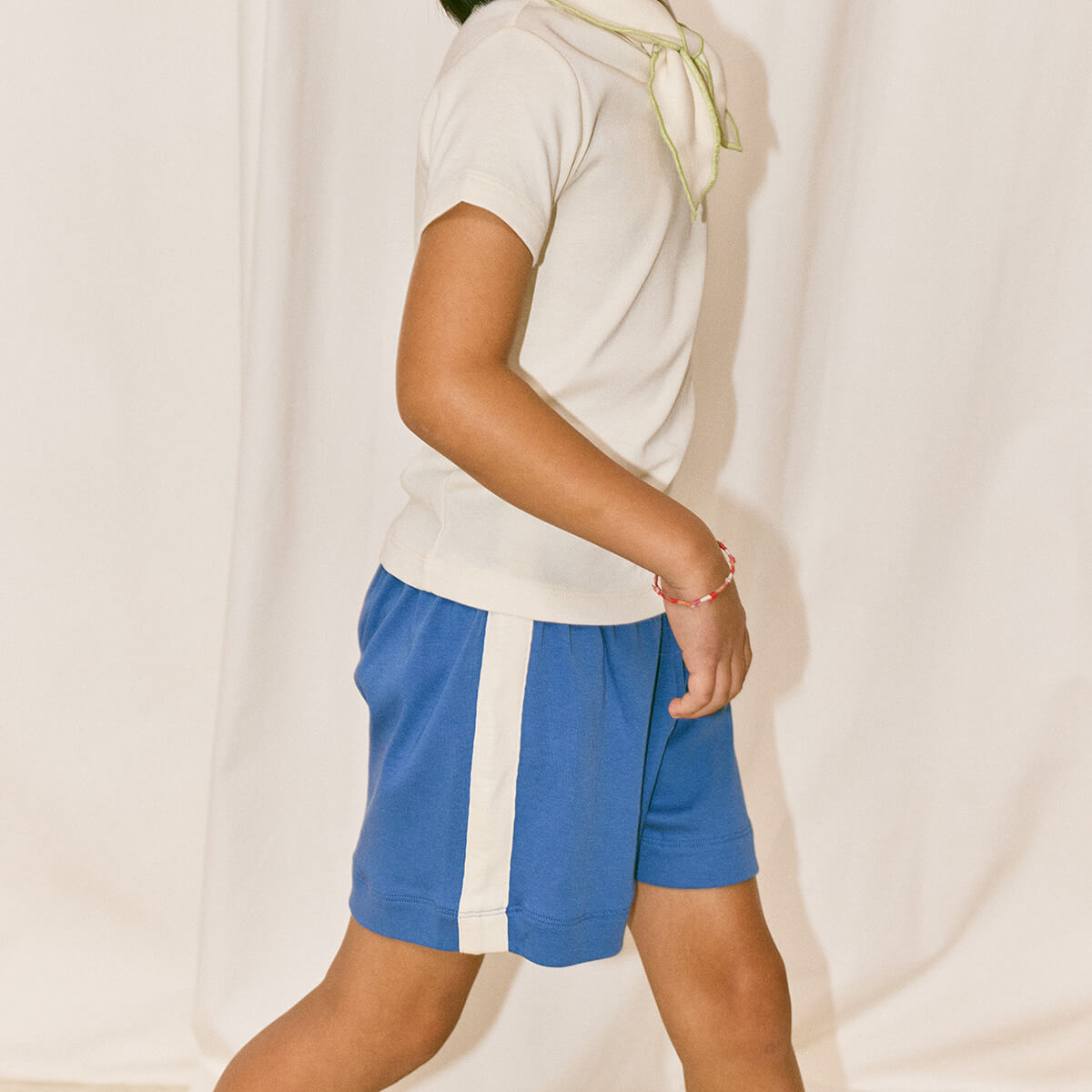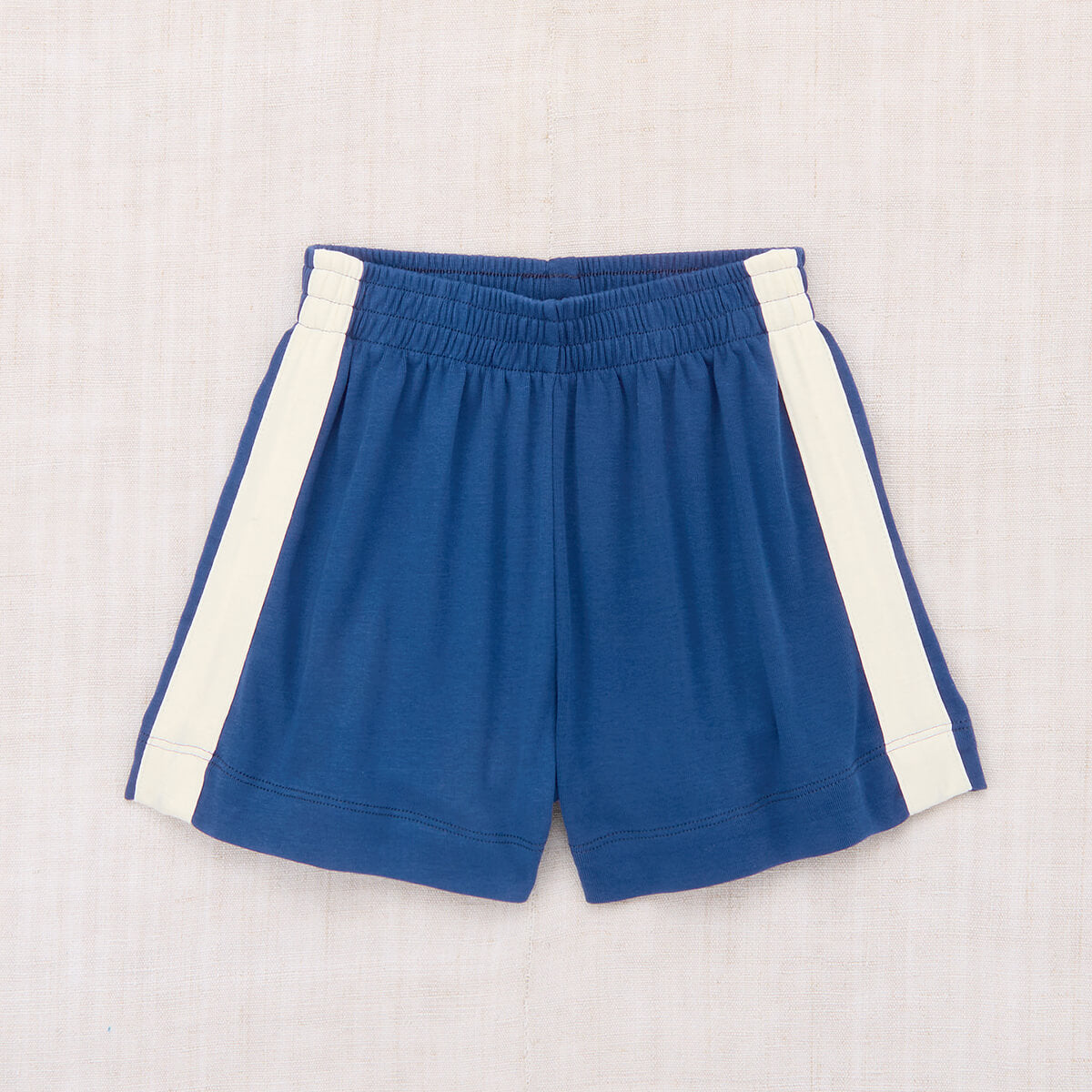 Resort Short by Misha & Puff. Vintage-style pull-on shorts in organic Pima cotton, with an elastic waistband and contrast appliqué striped sides.