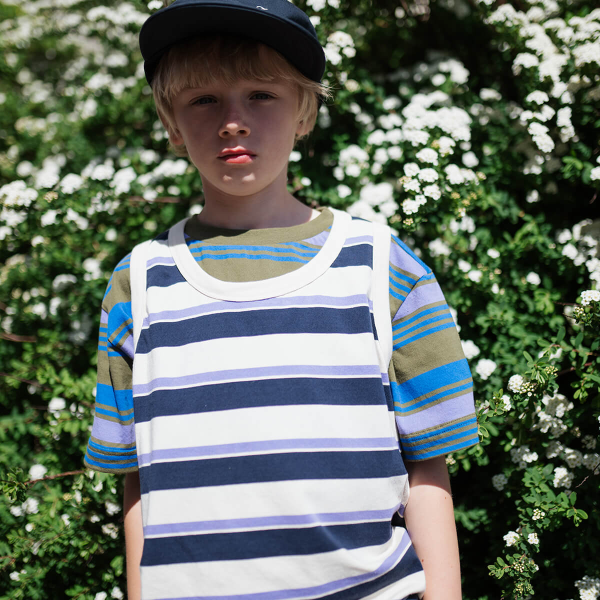 Singlet in Cream Teal Glacier Stripe by Repose AMS