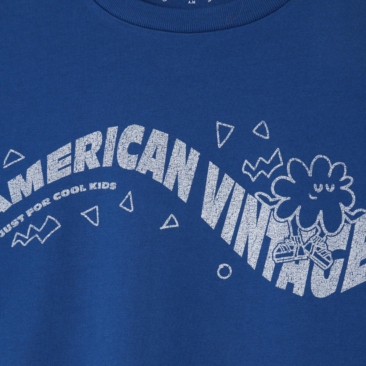 Fizvalley kid's T shirt by American Vintage. Vintage inspired straight cut short sleeve tee in royal blue with American Vintage placement print on the chest.