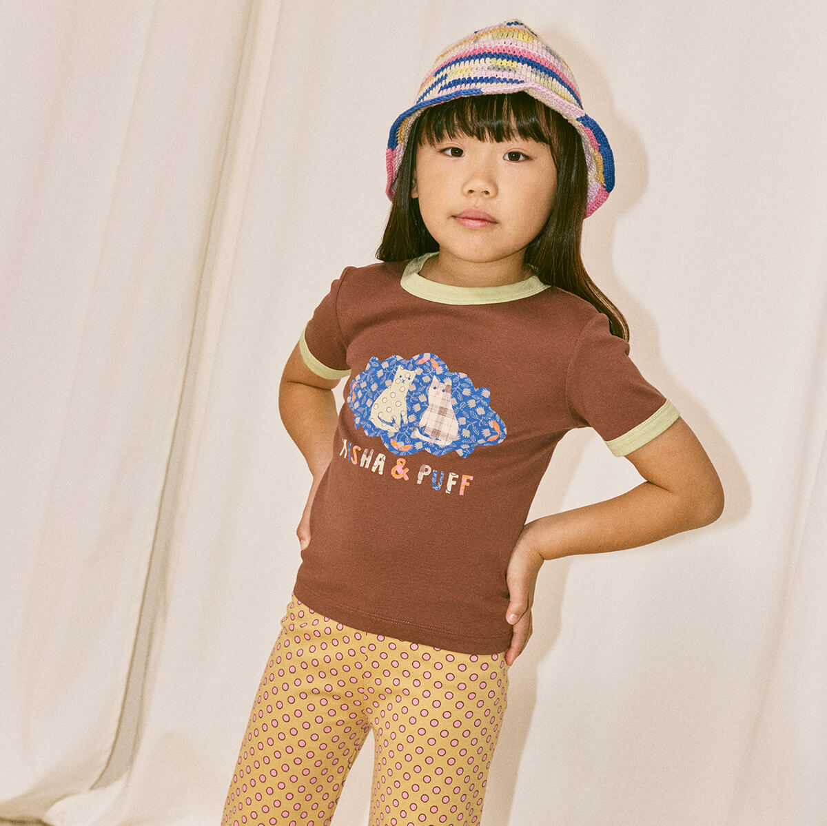 Barn Cats Ringer Tee in Cola by Misha & Puff