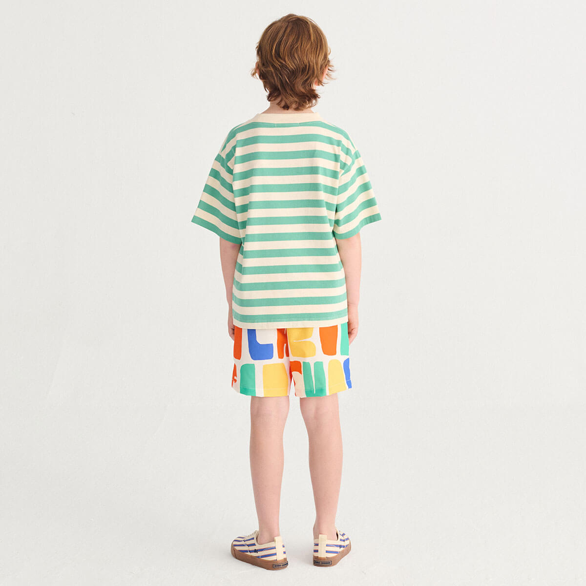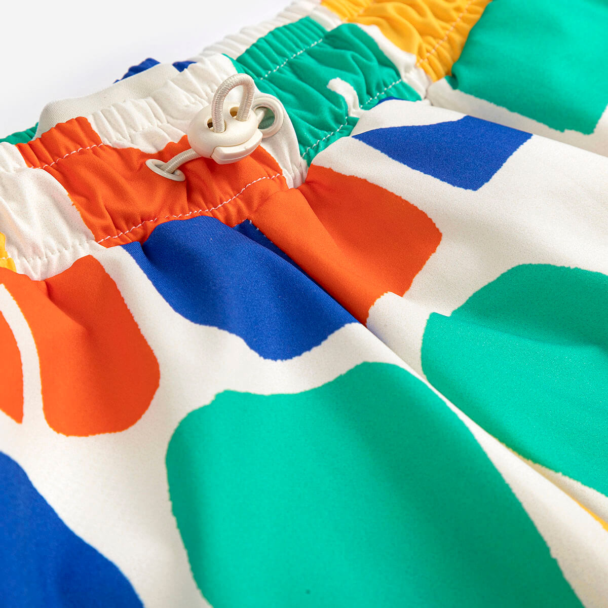 Bobo Choses Color All Over Swim Board Shorts by Bobo Choses. Practical and fun these off white swim shorts feature an elasticated waistband with adjustable drawstring, over knee length, seam pockets, a relaxed fit and solar protection.