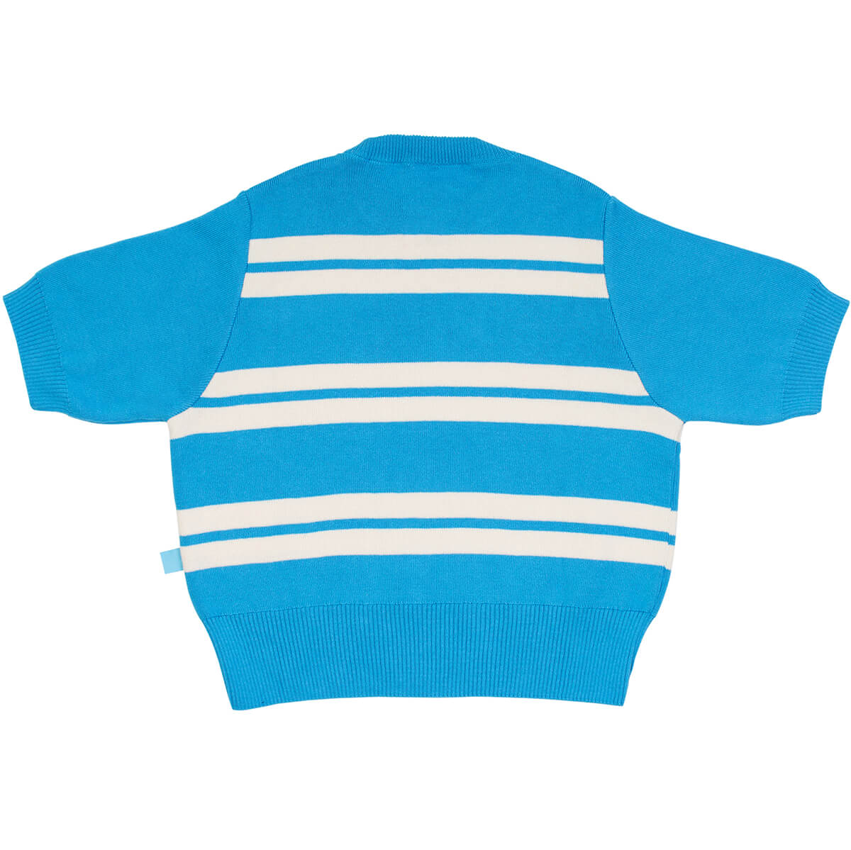 Vela Knit Top by Wynken. Relaxed fit Milano knit top with rounded rib neckline and dropped shoulder. This top has a loose body and generous wide short sleeves, both with a fitted rib trim. Made in an organic cotton with flag logo label in side seam.