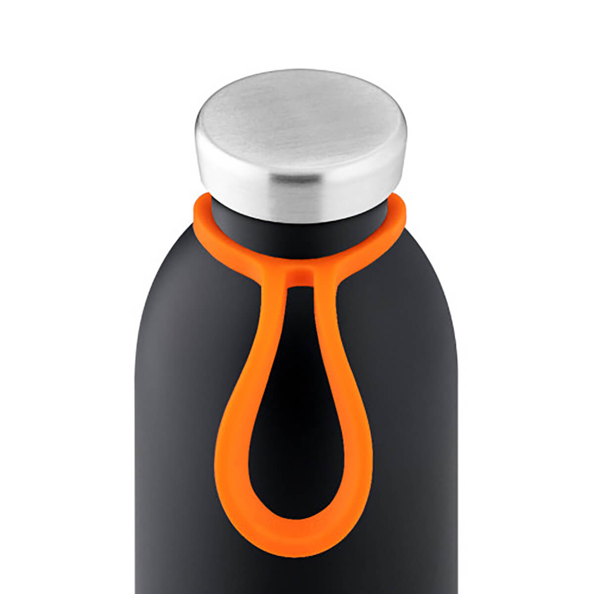 Bottle Tie in orange by 24 Bottles. Bottle Tie is the smart handle for your water bottle. The most comfortable and stylish solution to carry it safely and with a secure grip, throughout the day. Featuring extraordinary flexibility, Bottle Tie never deforms nor cracks, no matter how you fold it. Tie it around your water bottle’s neck to hold it firmly and carry it in style, secured to your bag or belt loop, without any carabiner. Fits all sizes of Urban, Clima and Kids Bottle.