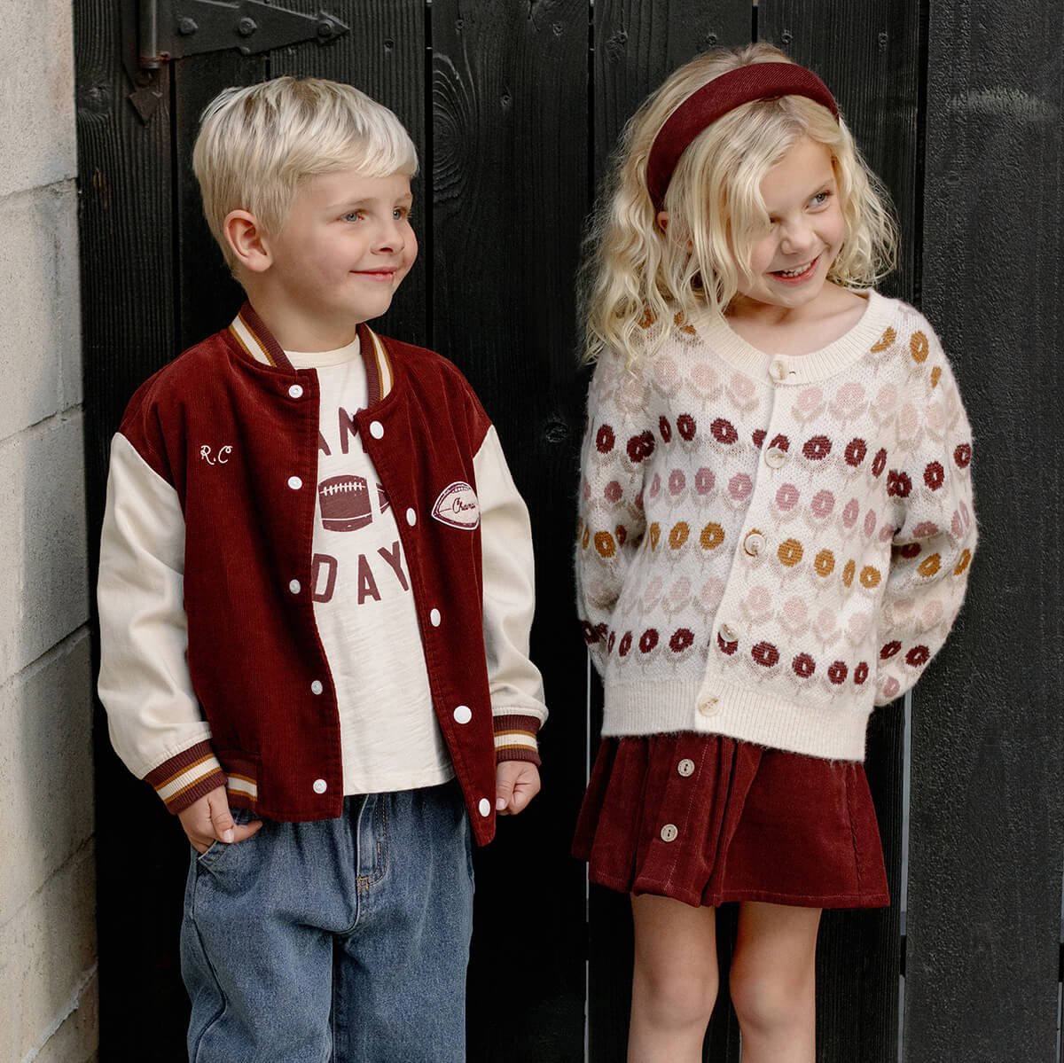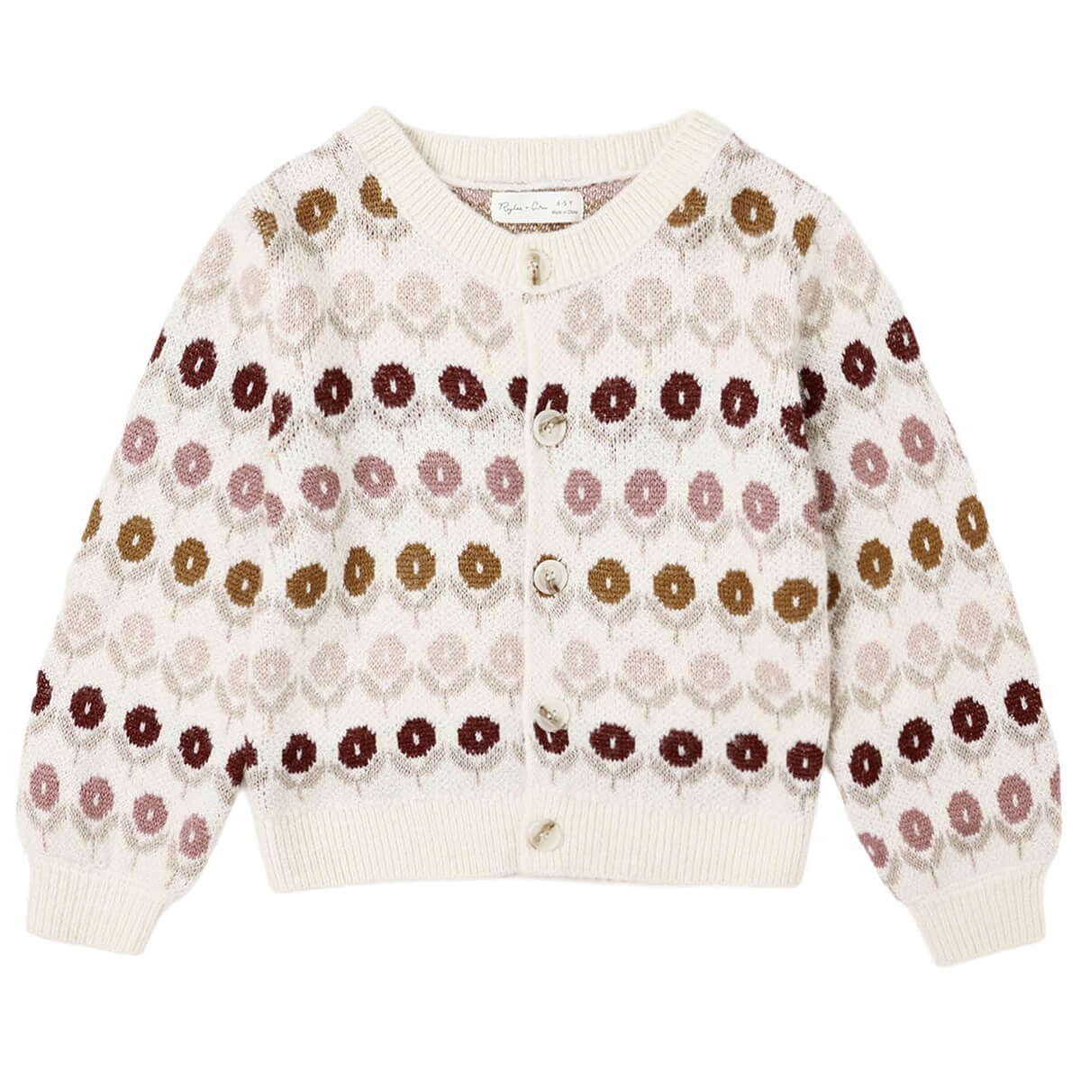 Cheyenne Cardigan by Rylee & Cru. This floral jacquard cardigan is the perfect cosy layer to complete any outfit! Designed with raglan sleeves and marble buttons down the center front for a timeless touch.