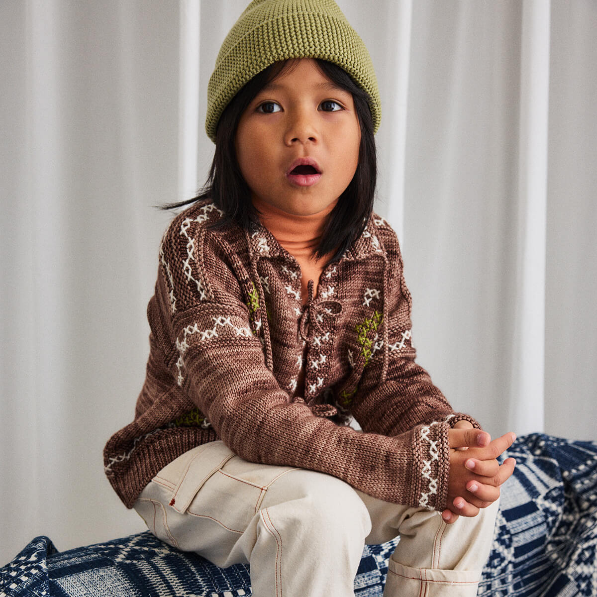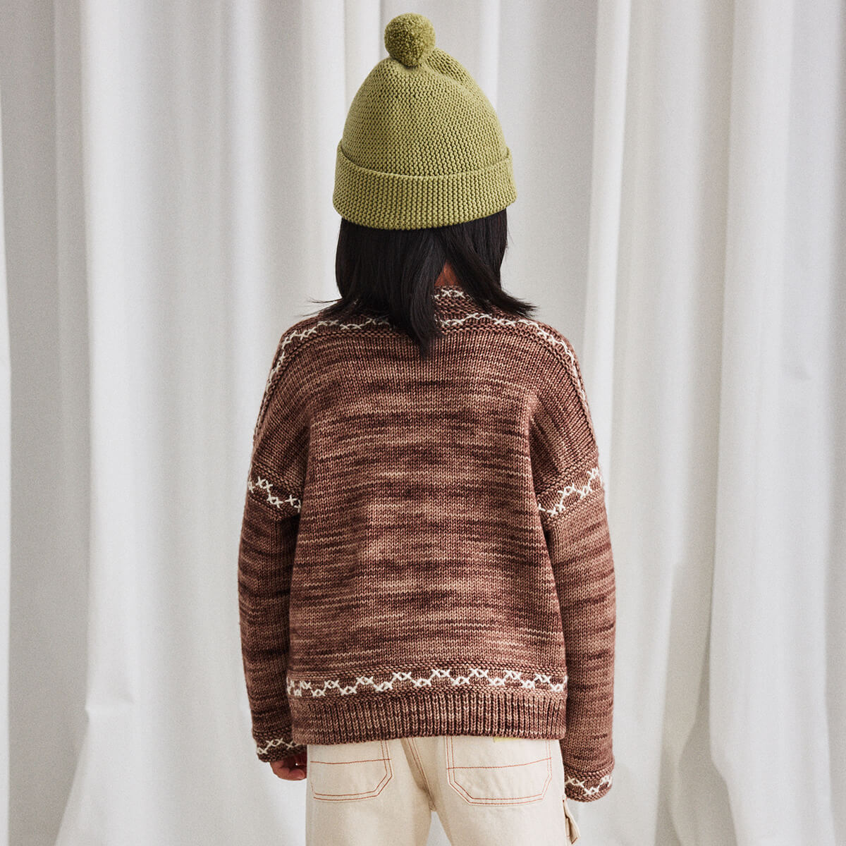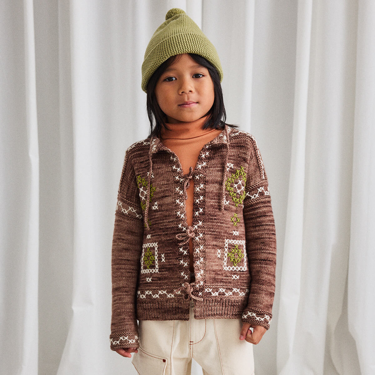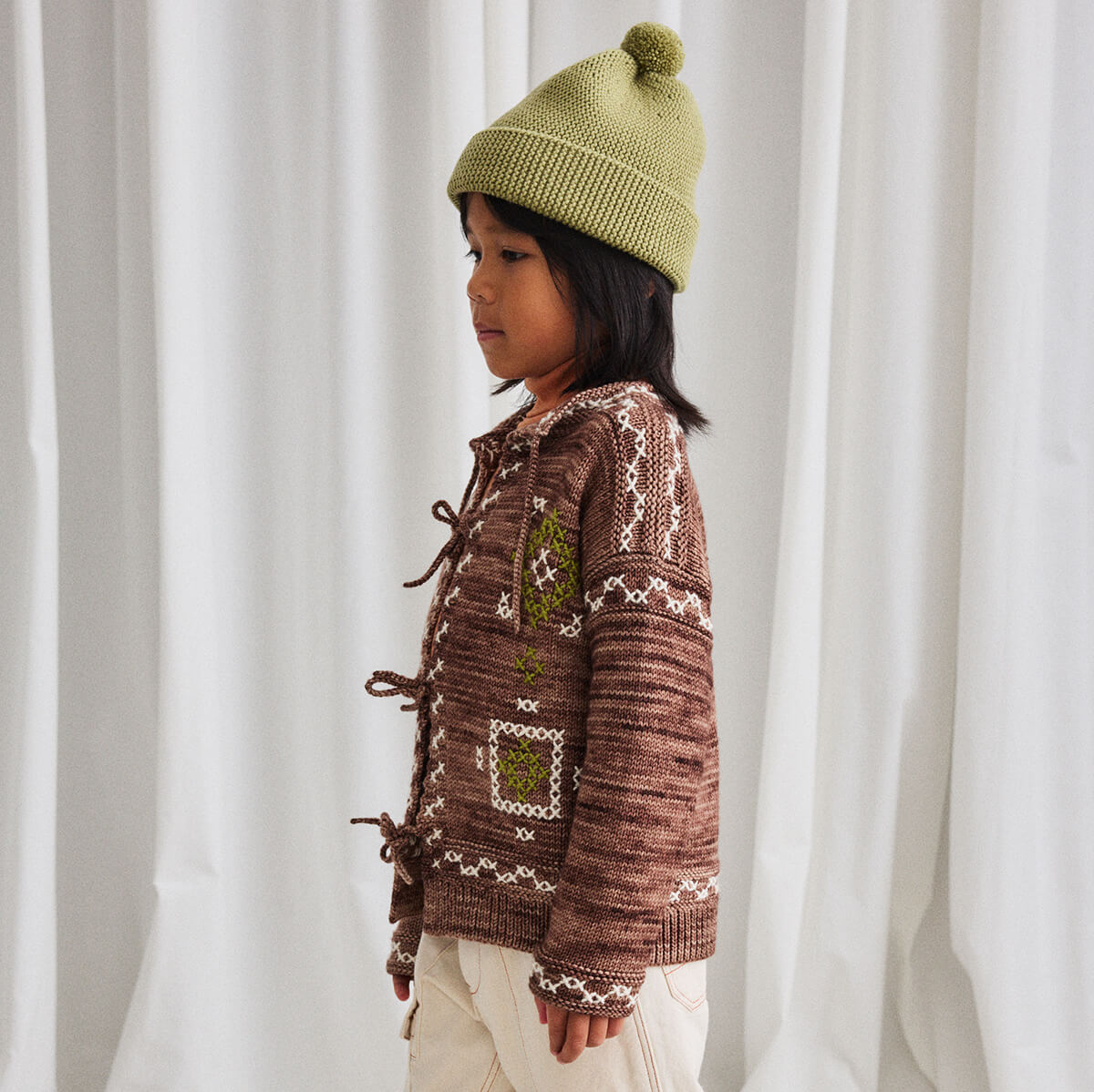 Cross Stitch Bjorn Cardigan in Affogato by Misha & Puff