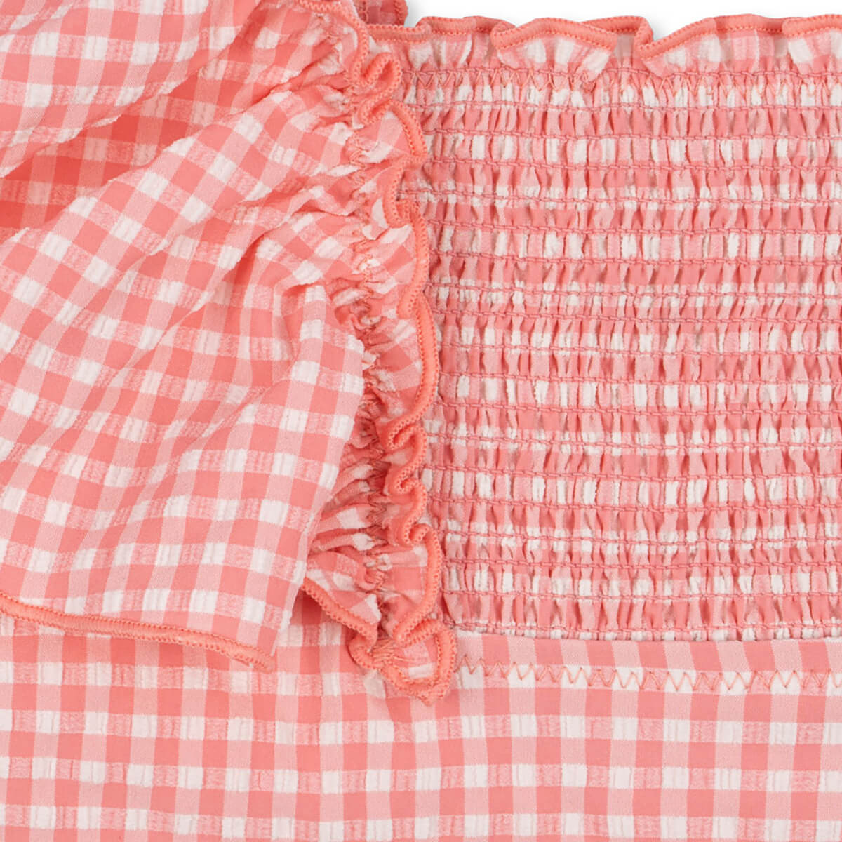 Fresia Swimsuit by Konges Sløjd. Swimsuit crafted in a textured seersucker fabric with a peplum waist.