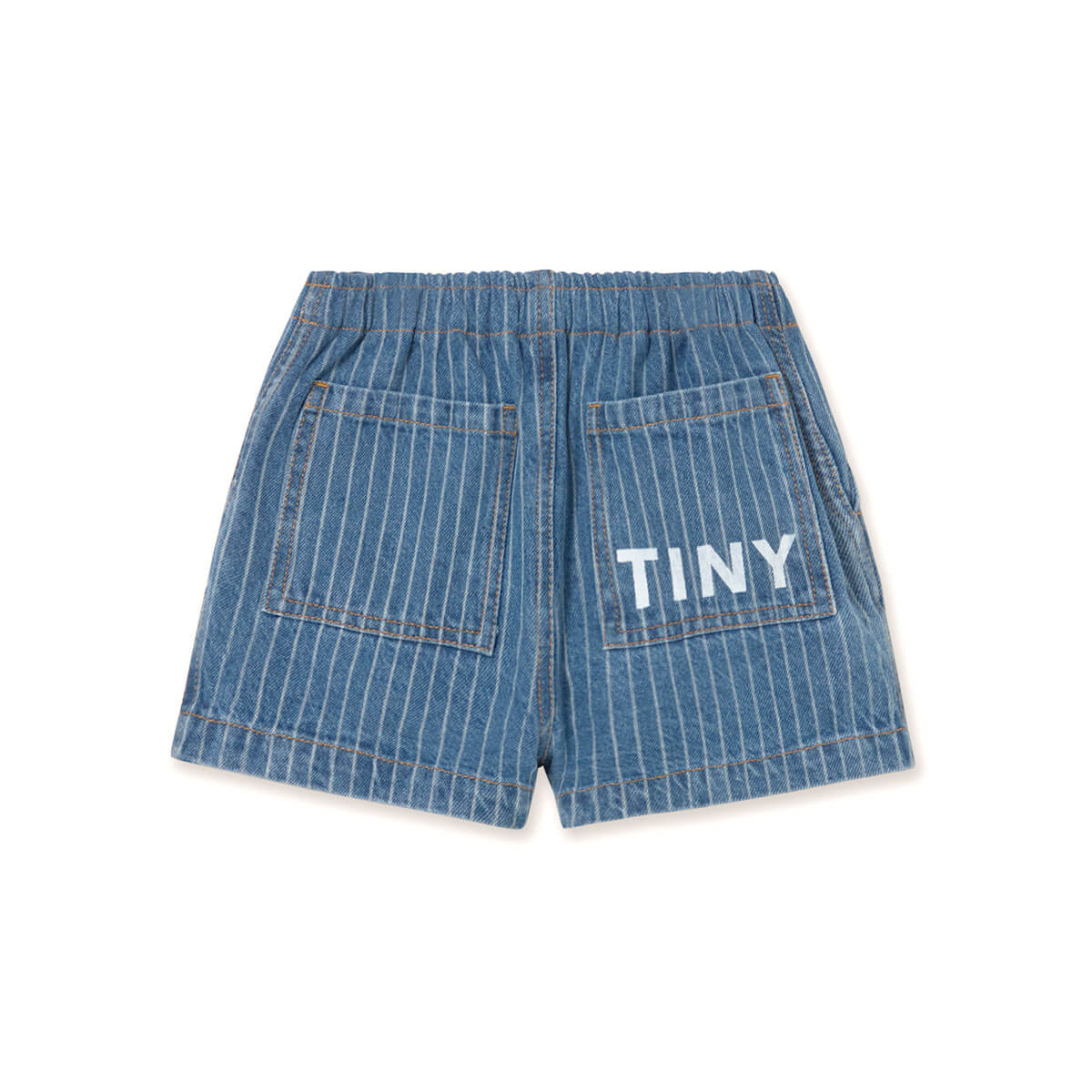Stripes Shorts by Tinycottons. These striped denim shorts combine style and comfort in a versatile piece. The elastic waistband ensures a comfortable fit, while the front internal pockets and back patch pockets add functionality. With no side openings, the shorts are finished with the TINY logo printed on the back, adding a distinctive and modern touch to any casual outfit.