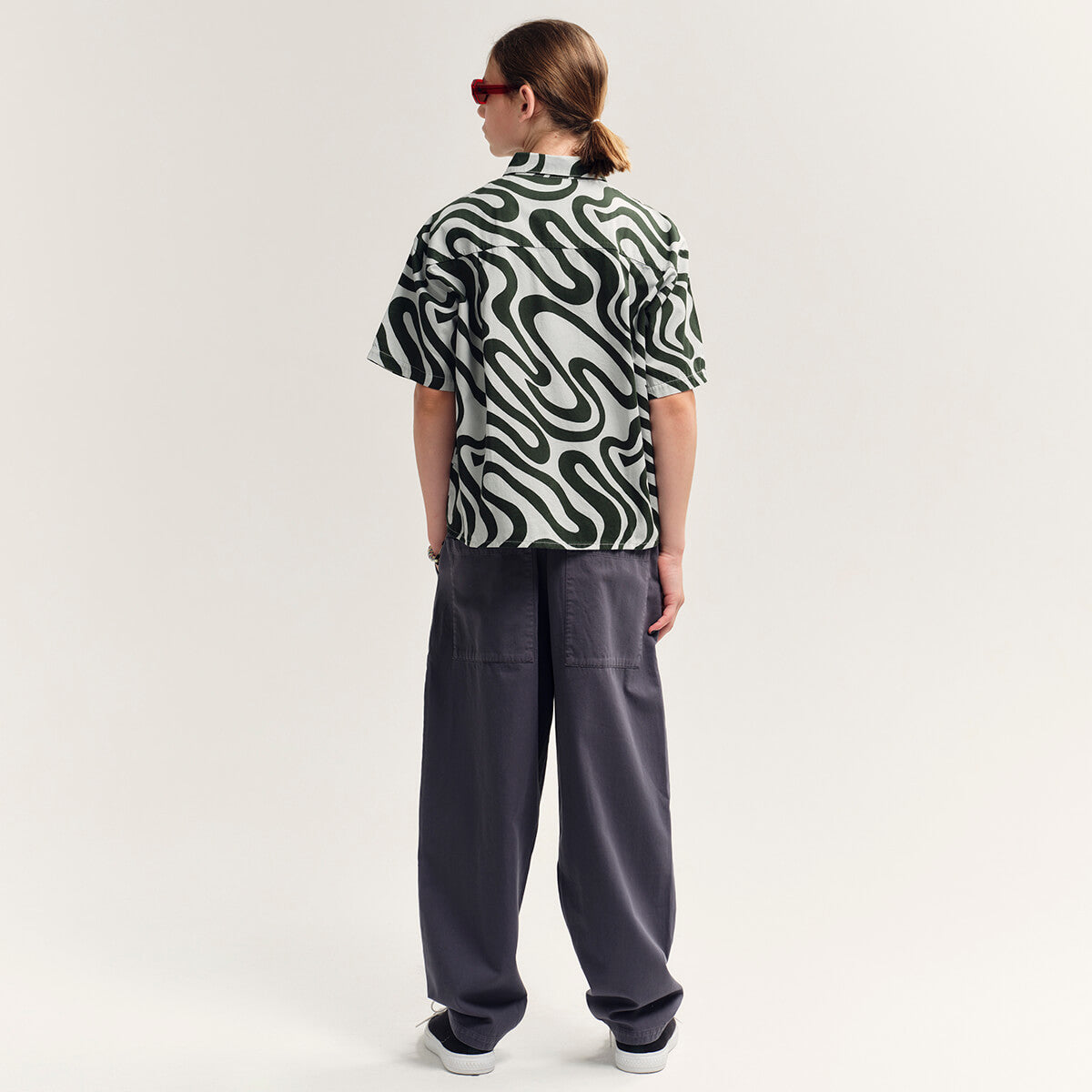 Curved Pant by Main Story. Heavier weight cotton trousers with a button up elasticated waist and back pockets.