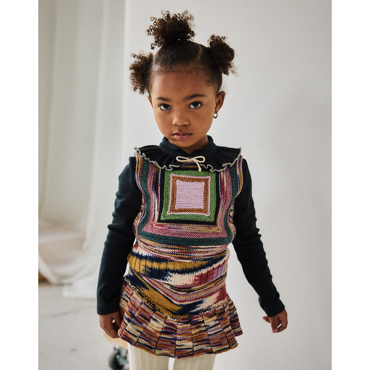 Skating Pond Skirt by Misha & Puff. A hand-knit skirt in heavier-weight Merino wool. Featuring attached bloomers with ribbed cuffs and a ribbed waistband with a popcorn tie drawstring for a secure fit.
