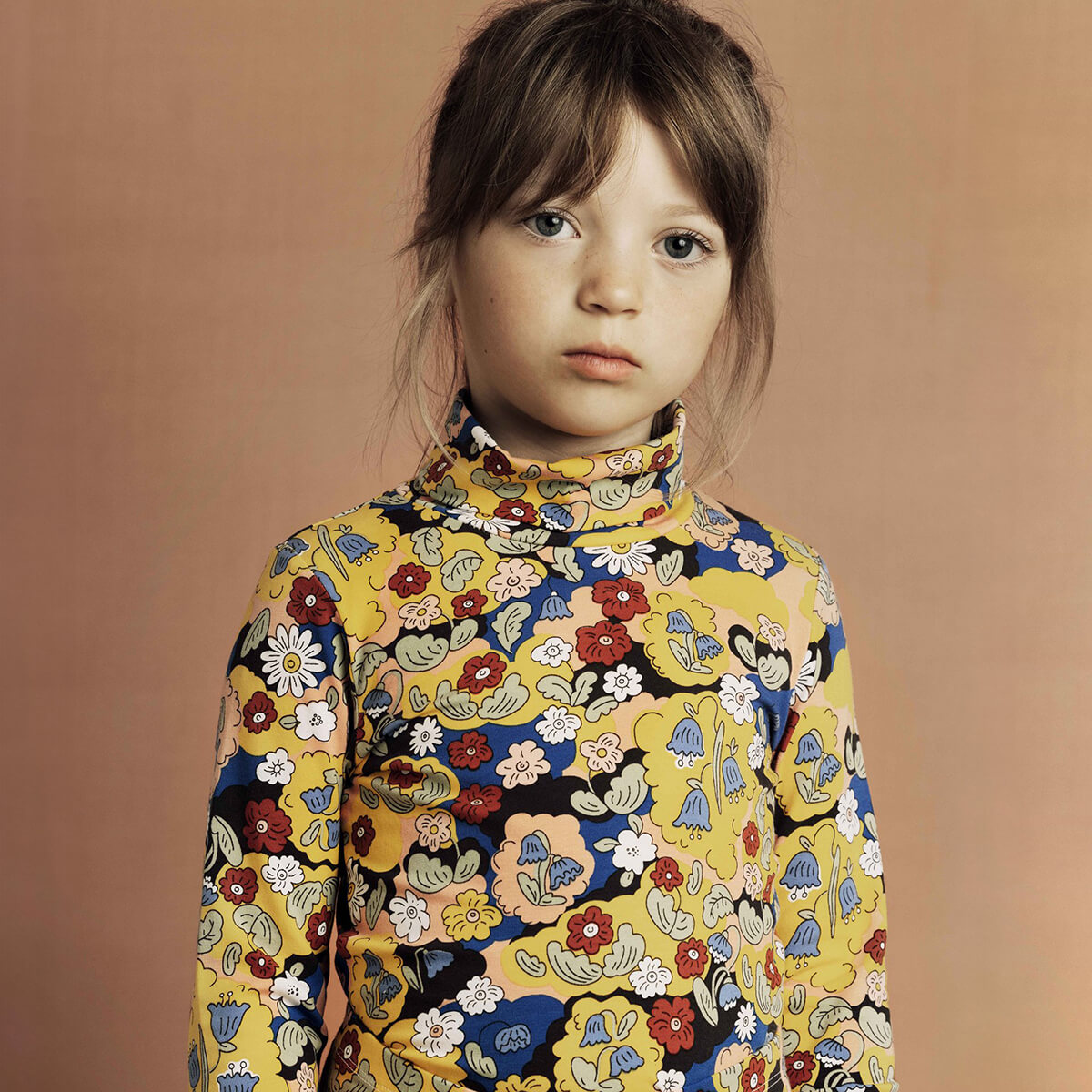 Flowers all over turtleneck by Mini Rodini. Long sleeve turtleneck with an all over flower print.