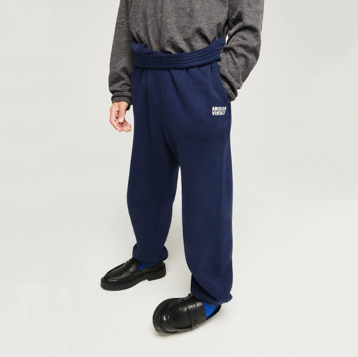 Izubird kid's joggers by American Vintage. Simple jogging bottoms with an elasticated drawstring waist and elasticated ankle. American Vintage logo in white printed on the front pocket.