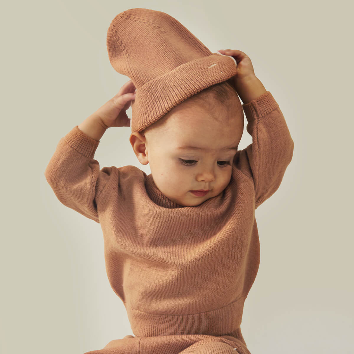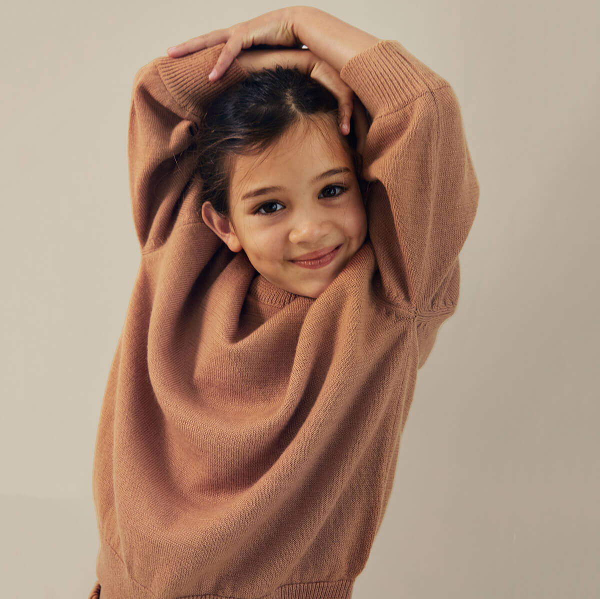 Knitted jumper by Gray Label.  A slightly boxy fit jumper made from 100% non-itchy, super soft and RWS certified merino wool. It has ribbed cuffs, bottom and neck. The logo is embroidered on right chest.