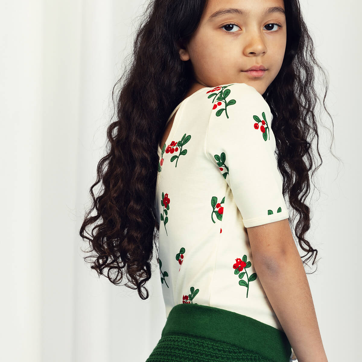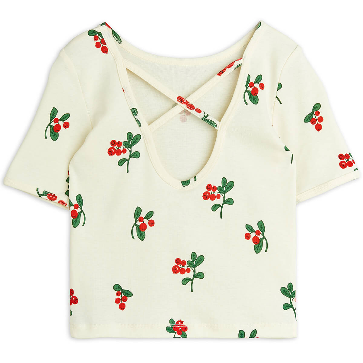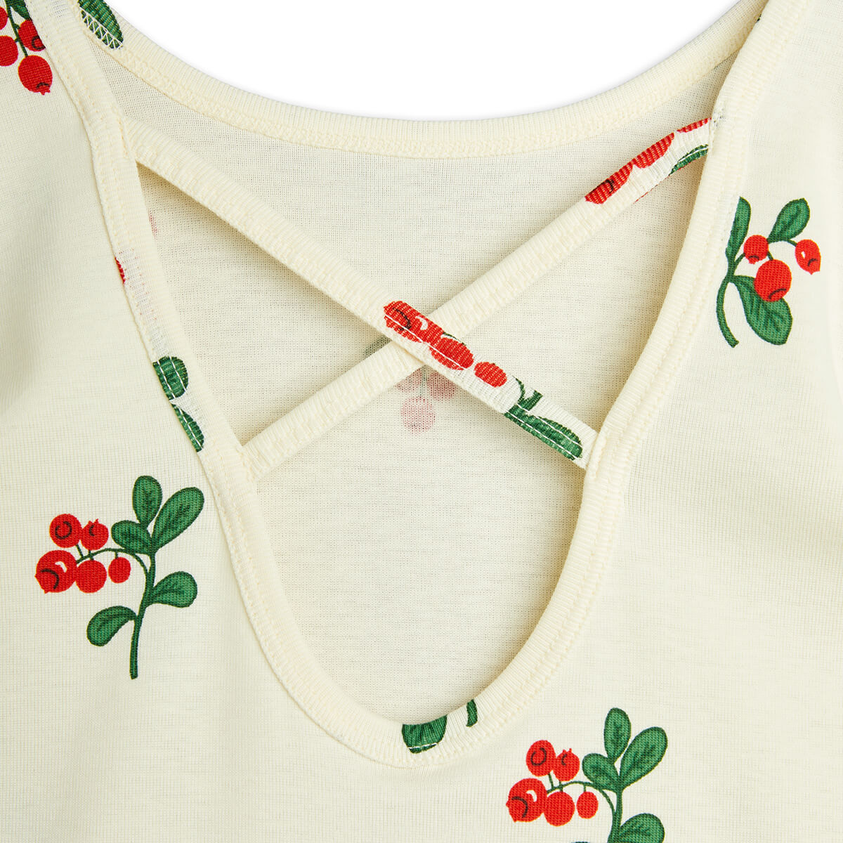 Lingonberries all over print ballet t shirt by Mini Rodini. Tight fit tee designed with an open back and crossed straps.