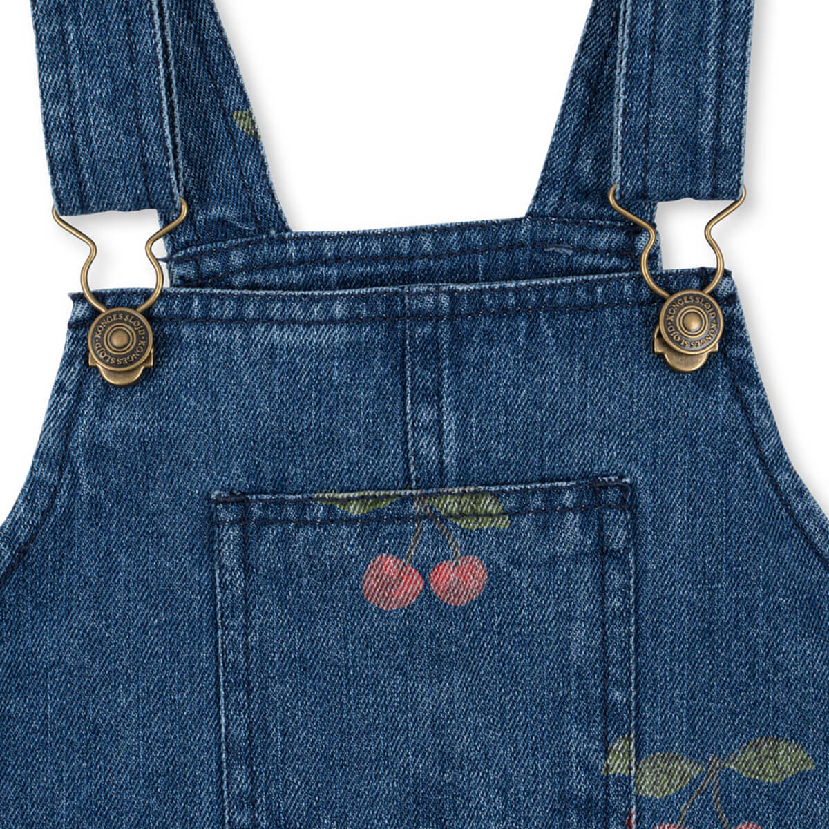 Magot Dress by Konges Sløjd. A soft denim pinafore dress with an all over cherry print.