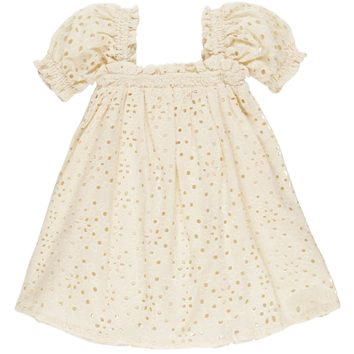 Milan dress by Rylee & Cru. A puff sleeve dress with smock detailing at the neck and cut-out broderie details.