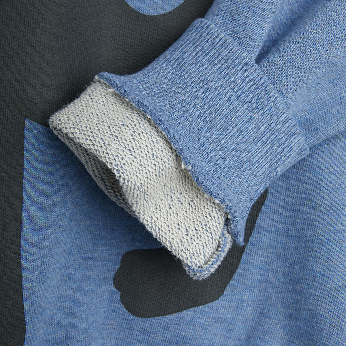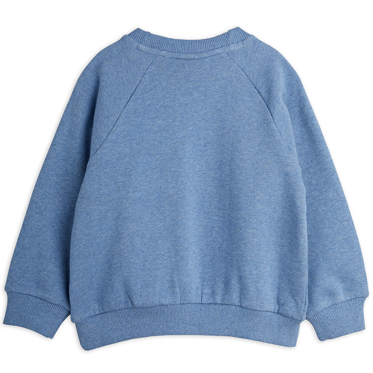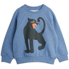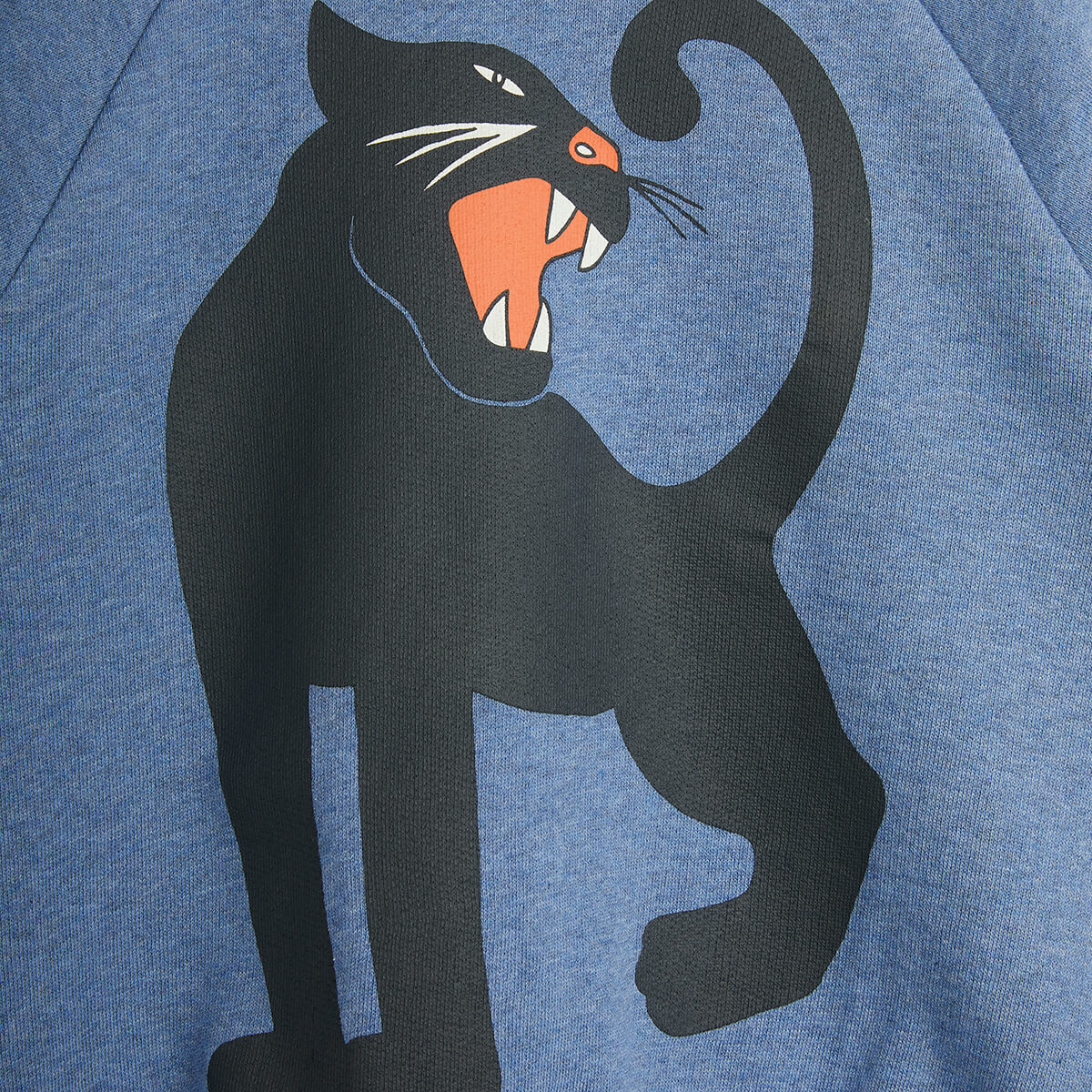 Panther Sweatshirt by Mini Rodini. Blue melange sweatshirt featuring a large Panther print in the front, made from 100 % GOTS certified organic cotton. The sweatshirt is designed with raglan sleeves, rib at the neck, sleeve ends and bottom hem.