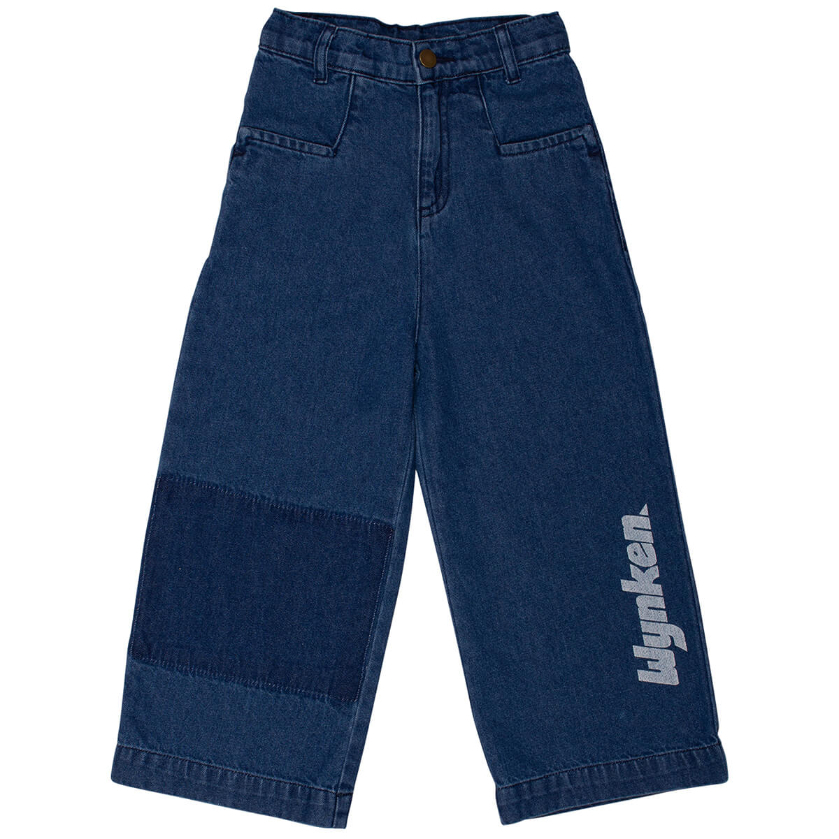 Jeans by Wynken. Wide length denim pants with scoop pockets and zip. Featuring Wynken logo on leg and back pocket.