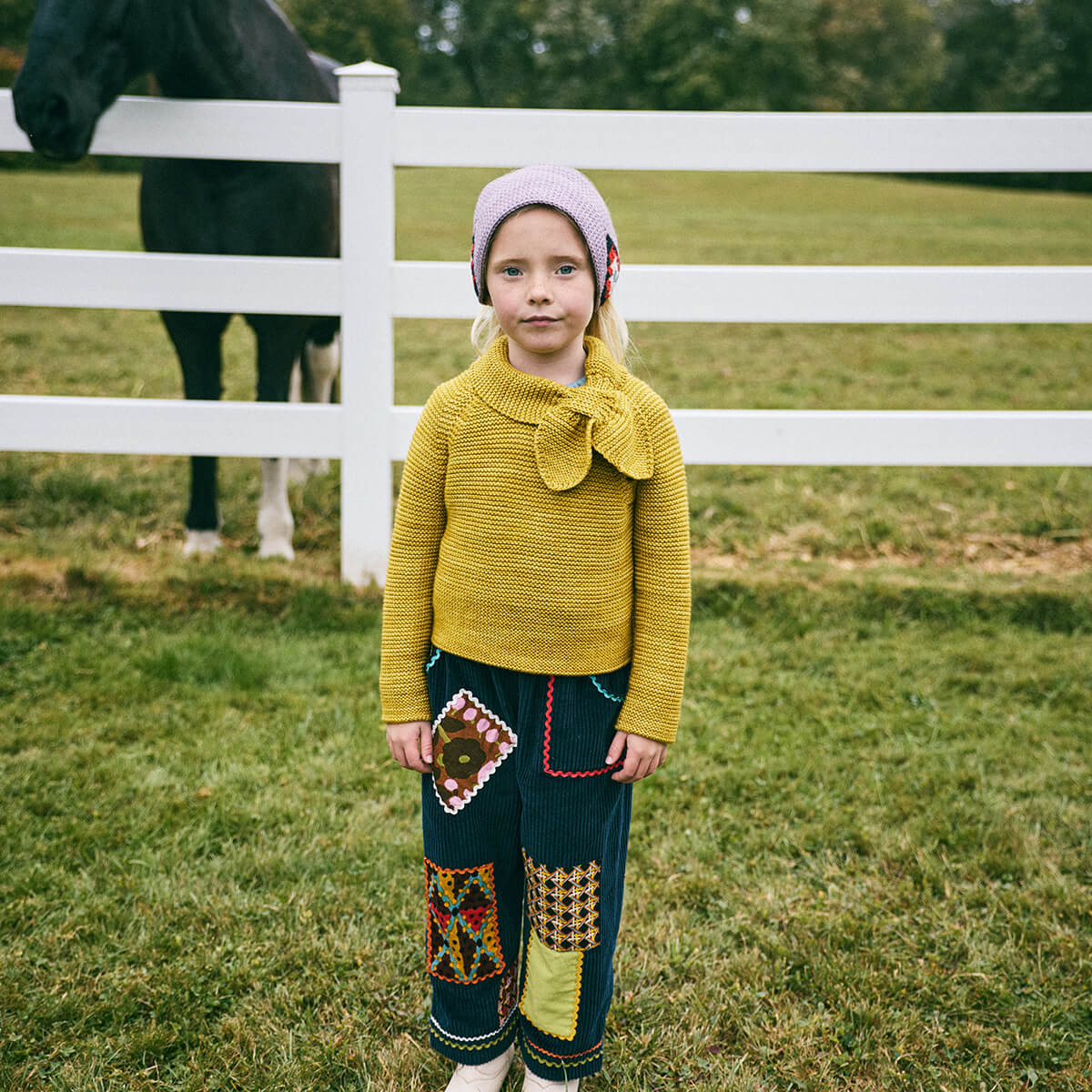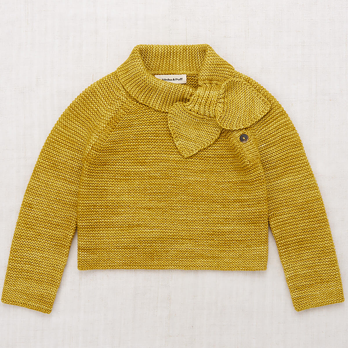 Scout Pullover by Misha & Puff. Inspired by Misha & Puff’s signature Scout Top, a jacket-style cardigan in a heavier-weight Merino wool knit. Featuring the Scout pull-through kerchief, two front patch pockets, and horn button closure.