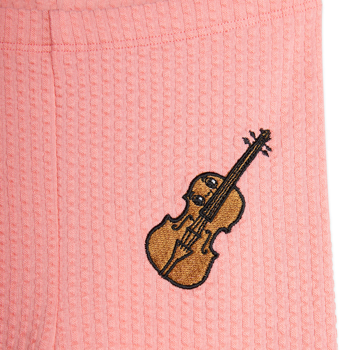 Violin Embroidered Leggings in Pink by Mini Rodini