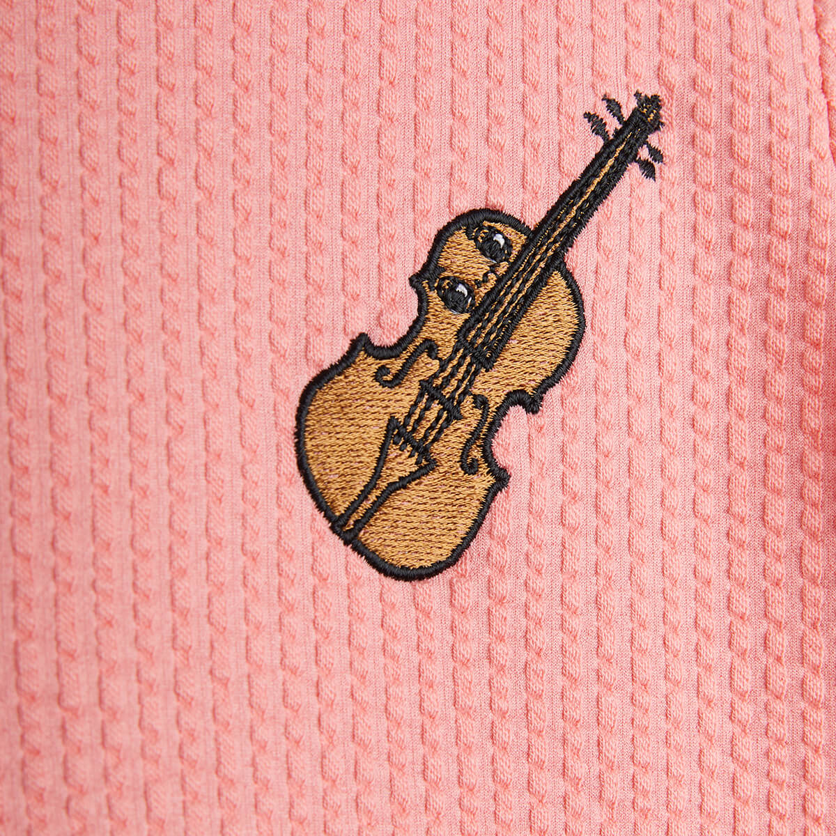 Violin Embroidered T Shirt in Pink by Mini Rodini