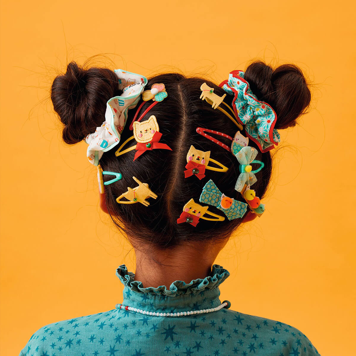 Yoko Hair Clips by Djeco. Add a wild and exotic touch to your hairstyle with the Yoko hair clip set. Composed of three metal barrettes adorned with a flower, a cat cupcake, and an acrylic cat cup. Perfect for enhancing your style with originality and elegance.