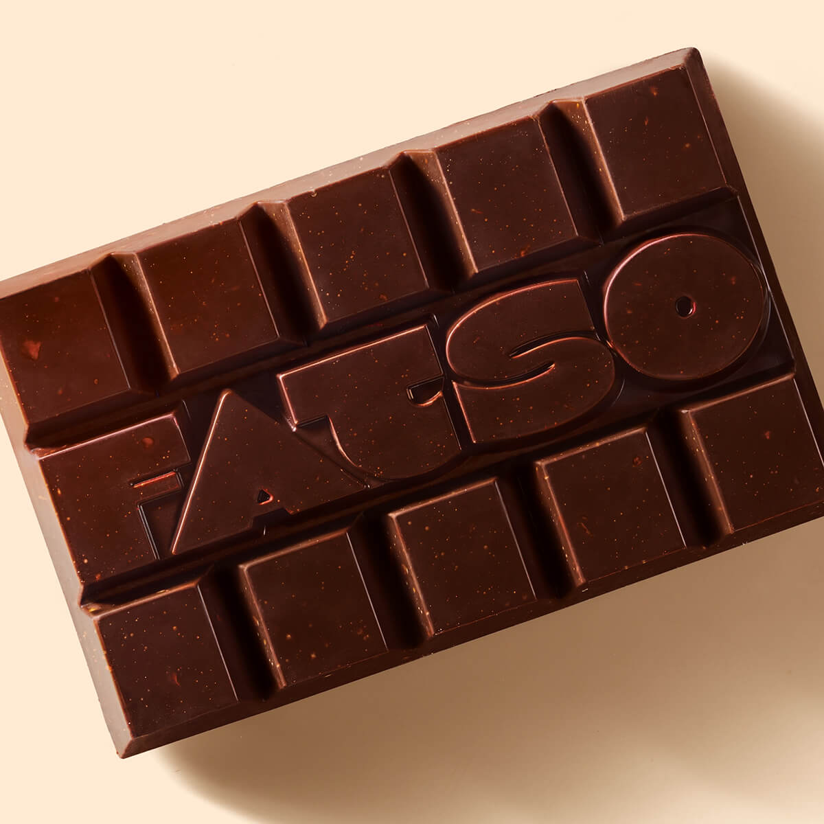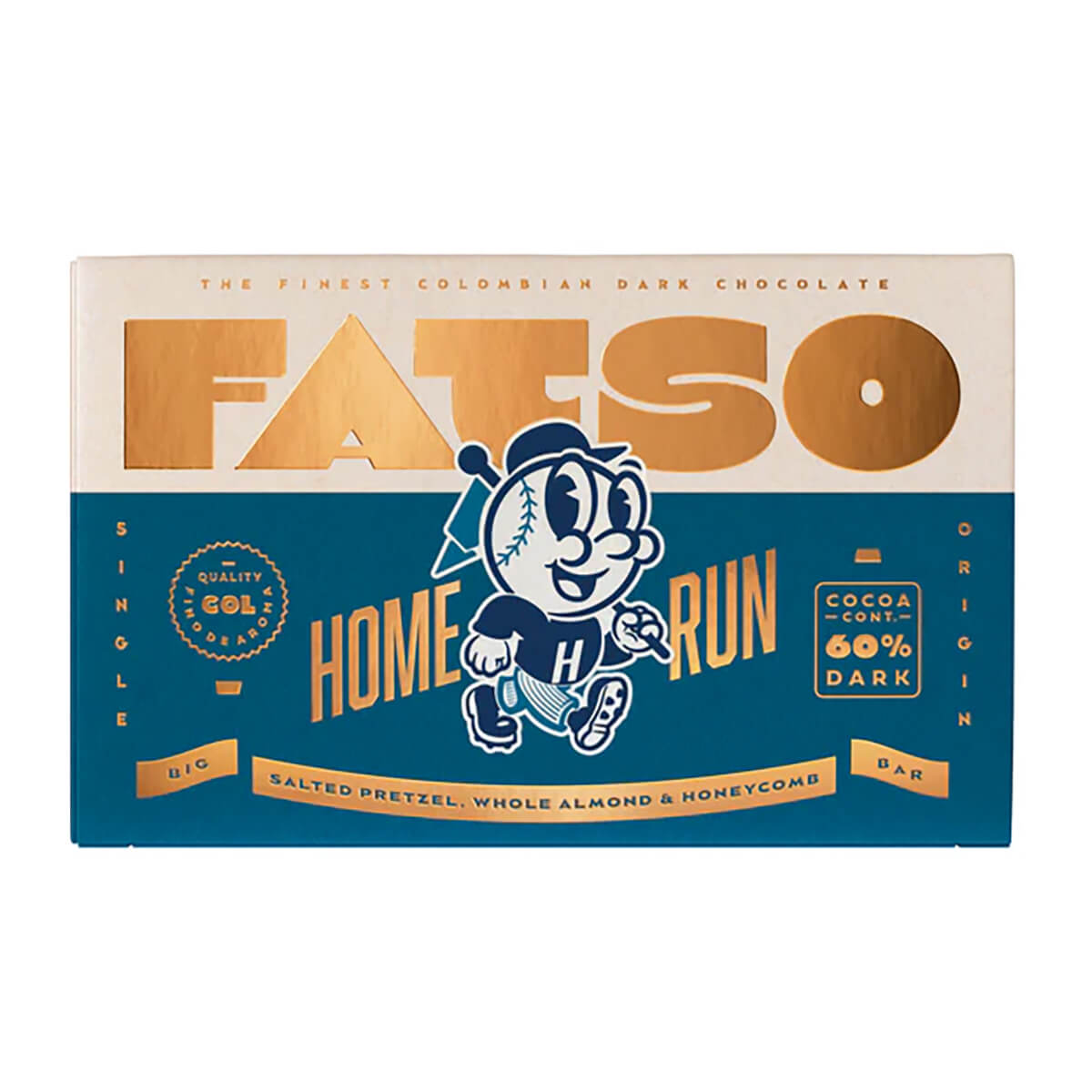 Home Run Salted Pretzel, Whole Almond and Honeycomb Dark Chocolate Bar by Fatso. This bar is our ode to a classic baseball snack. A heavy hitting combo of salted pretzels, whole almonds & honeycomb. If eating were a sport, we would be the world supreme numero uno! Sadly it’s not, so we will settle for being the champions of dark chocolate. Ethically sourced, 60% dark cocoa with Fino de Aroma credentials AND Vegan friendly- it doesn’t get much better than this!