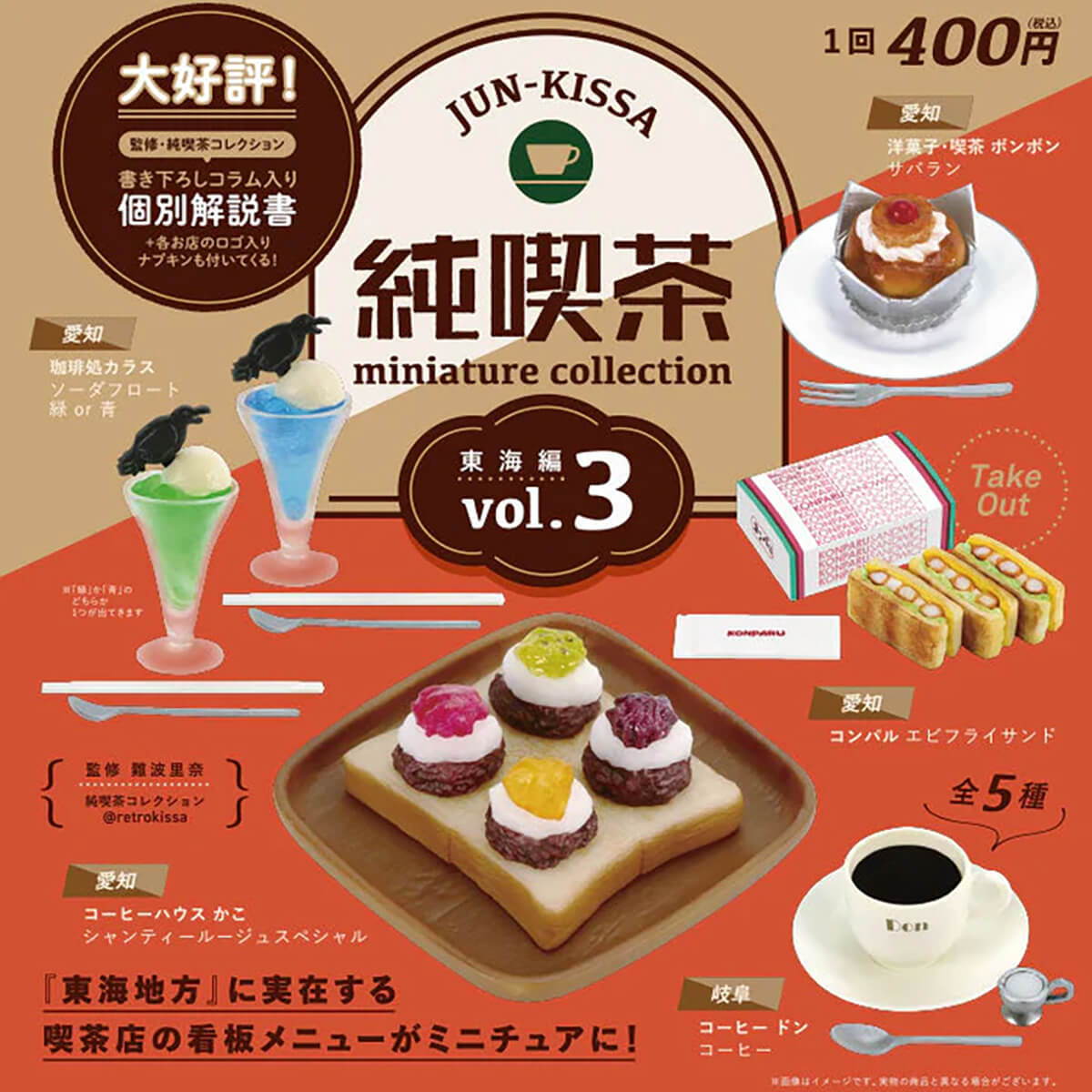 Jun Kissa Miniature Collection Vol. 3 Gachapon Capsule Collectible by KenElephant. Highly collectible and authentic Japanese gachapon capsule containing one of five miniature versions of the signature dishes from Tokyo's famous junkissa coffee shops, which are a must-visit! This third series features popular menu items from a real coffee shop in the Tokai regiona and each item is recreated in rich detail.
