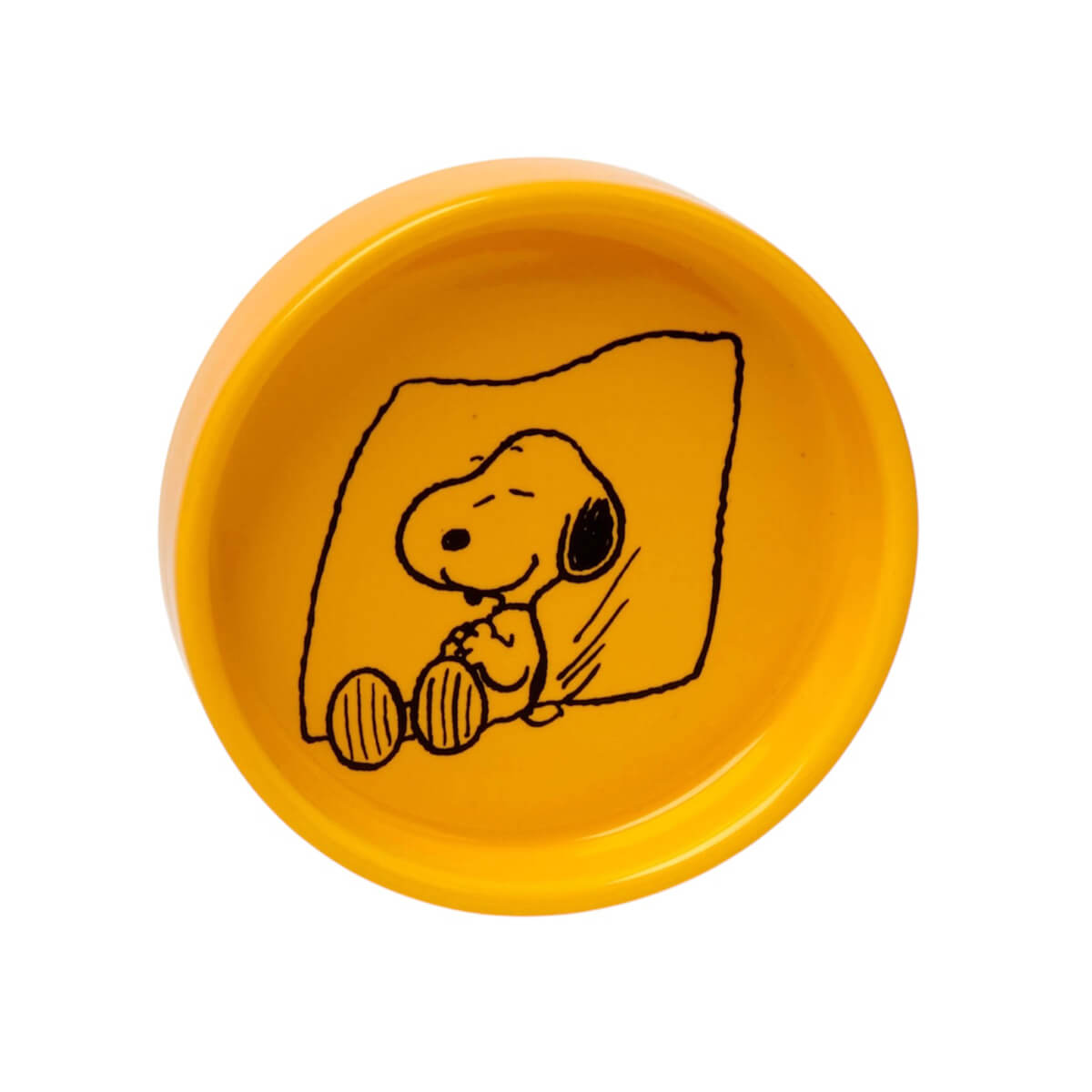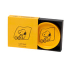 Lazy Day Snoopy Pin Dish by Magpie. Cute 8cm round shaped coloured glaze vegan ceramic shaped dish/tray. Decorated with a black decal of Snoopy relaxing. With slide out colourful gift box.