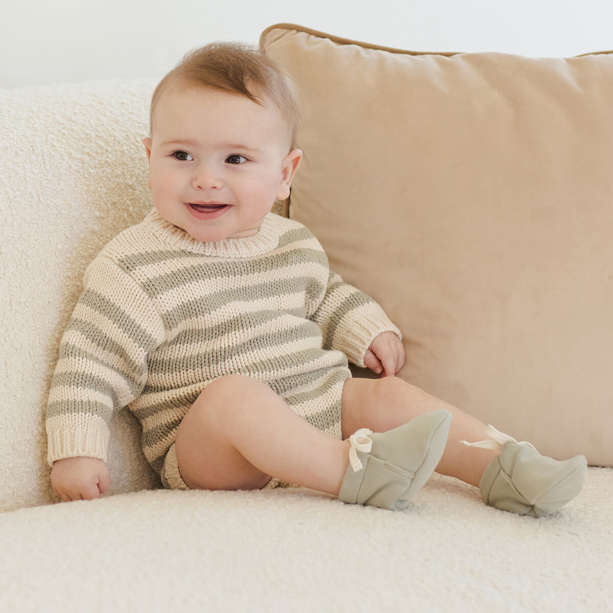 Baby booties by Quincy Mae. The softest baby booties to complete any outfit. With ties for a secure fit.