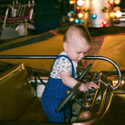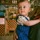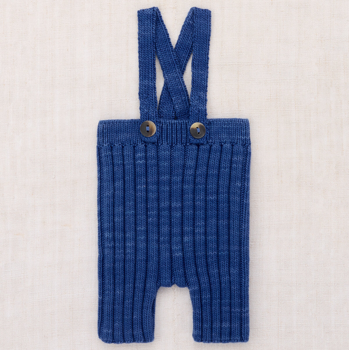 Baby Rib Shorties by Misha & Puff. A ribbed shorts overall in a Pima cotton knit, with adjustable straps and horn button closure.