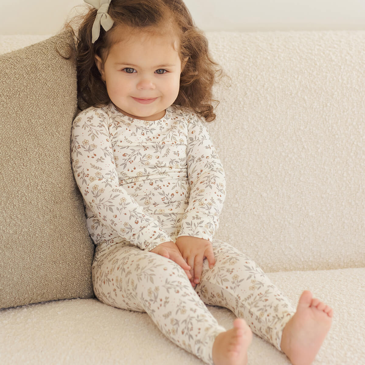 Bamboo Pyjamas by Quincy Mae. Slim fit long sleeve tee and leggings pyjama set, crafted from soft and stretchy bamboo fabric for all-night comfort.