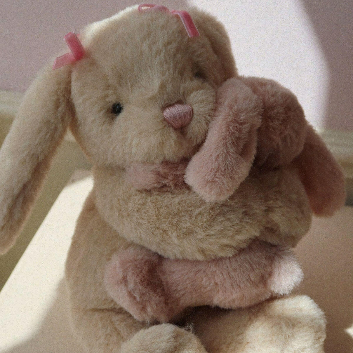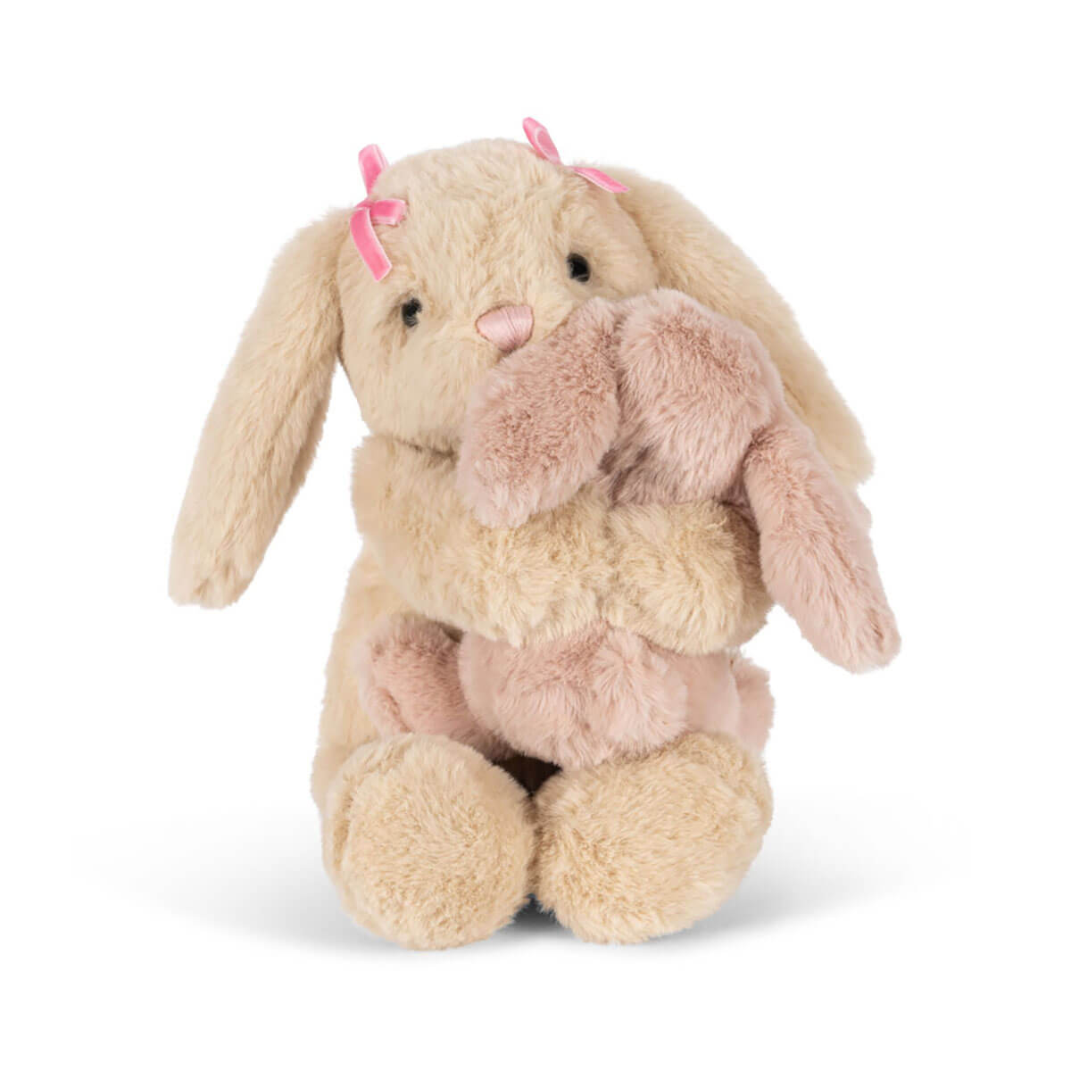 Bunny Hugs by Konges Sløjd. There's nothing as soft and snug like a warm hug from your best friend. The BFF Bunny is made for cuddles and comfort and is designed to hug its best friend, the tiny bunny, in its big bunny arms. Made from the softest materials, the BFF Bunny is a perfect companion for nap time or simply for playing with. The bunnies can also be separated and played with on their own.