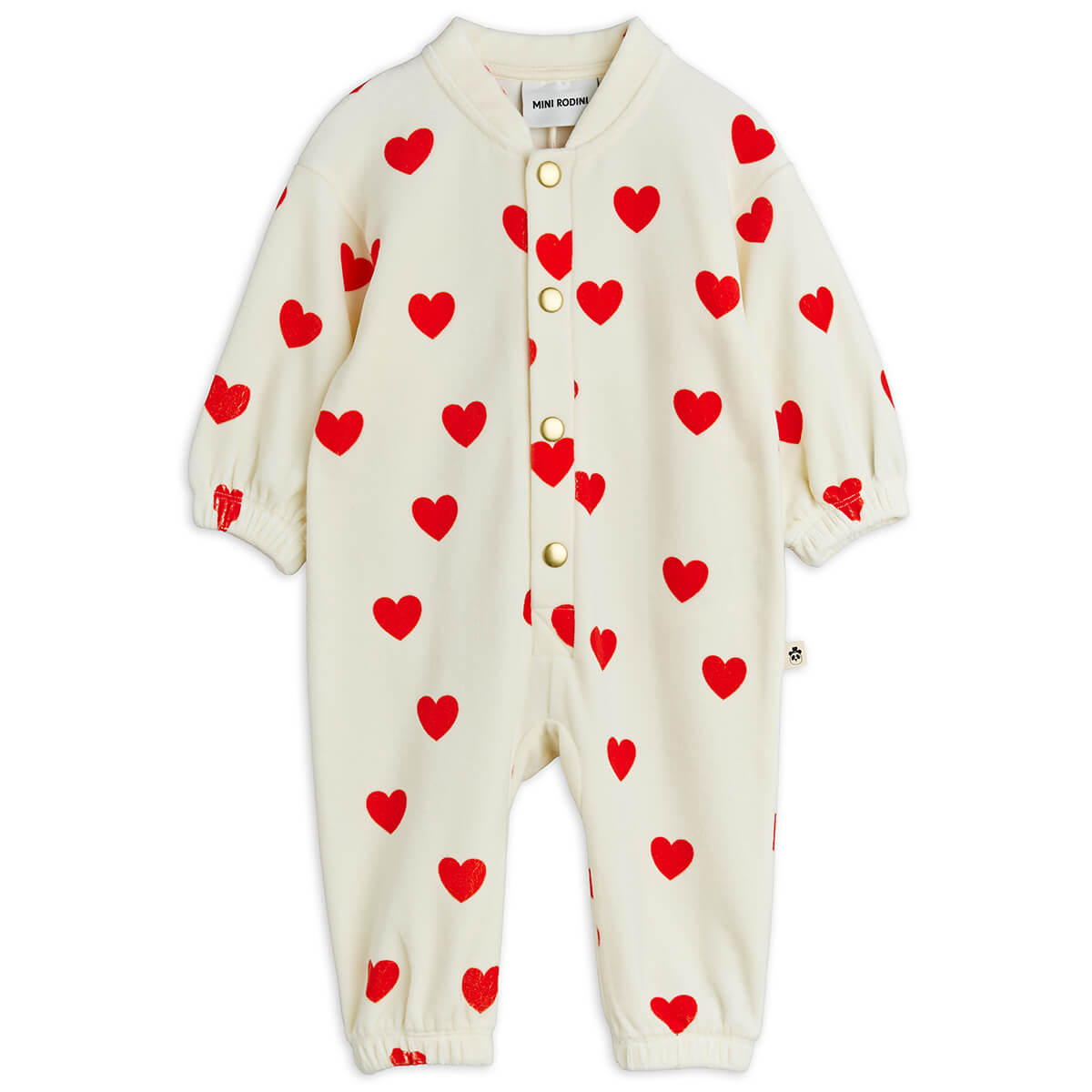 Hearts AOP Velour Baby Jumpsuit by Mini Rodini