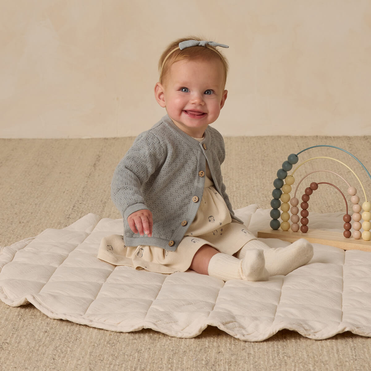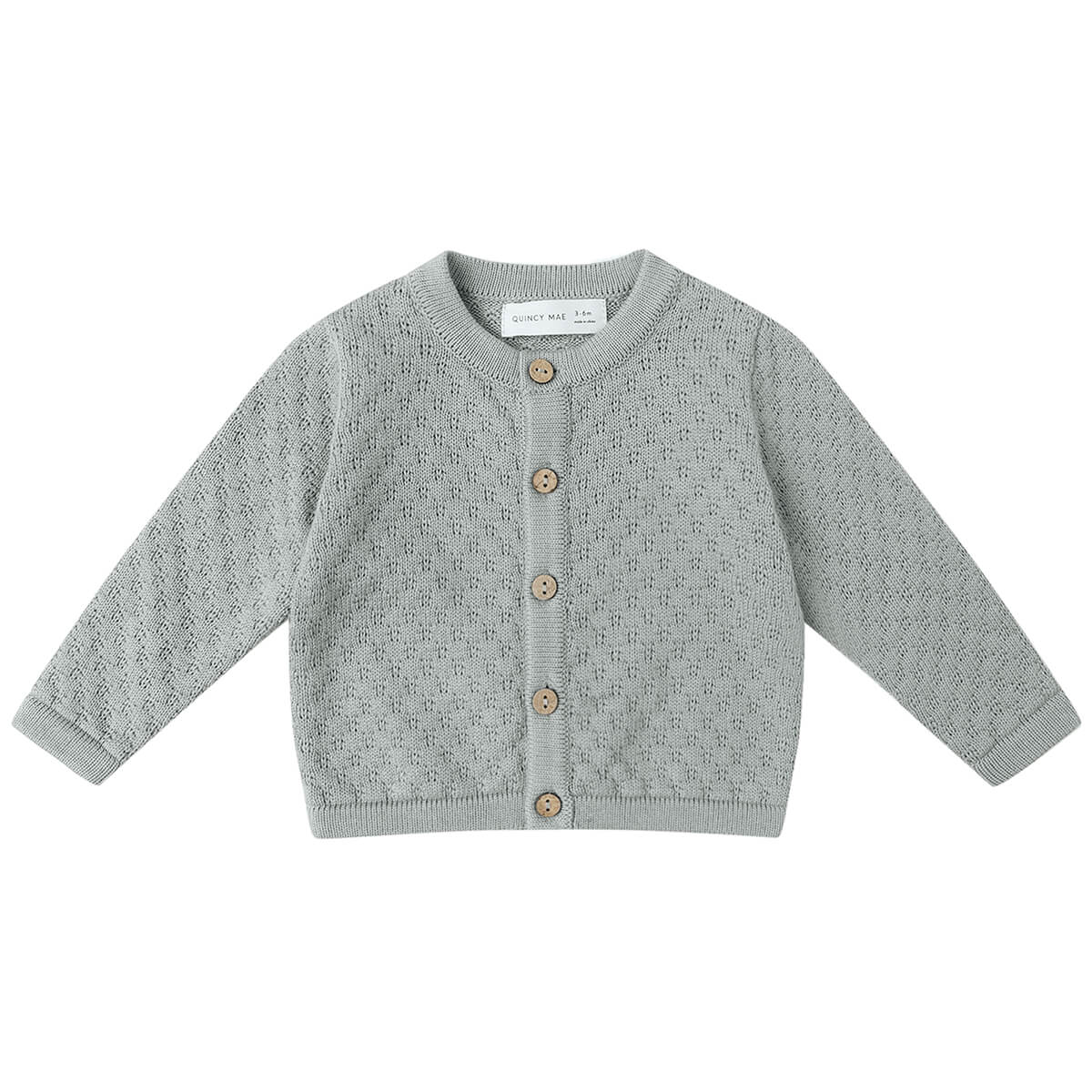 Cardigan by Quincy Mae. This cosy cardigan showcases a beautiful knit design and coconut buttons for an extra sweet look.