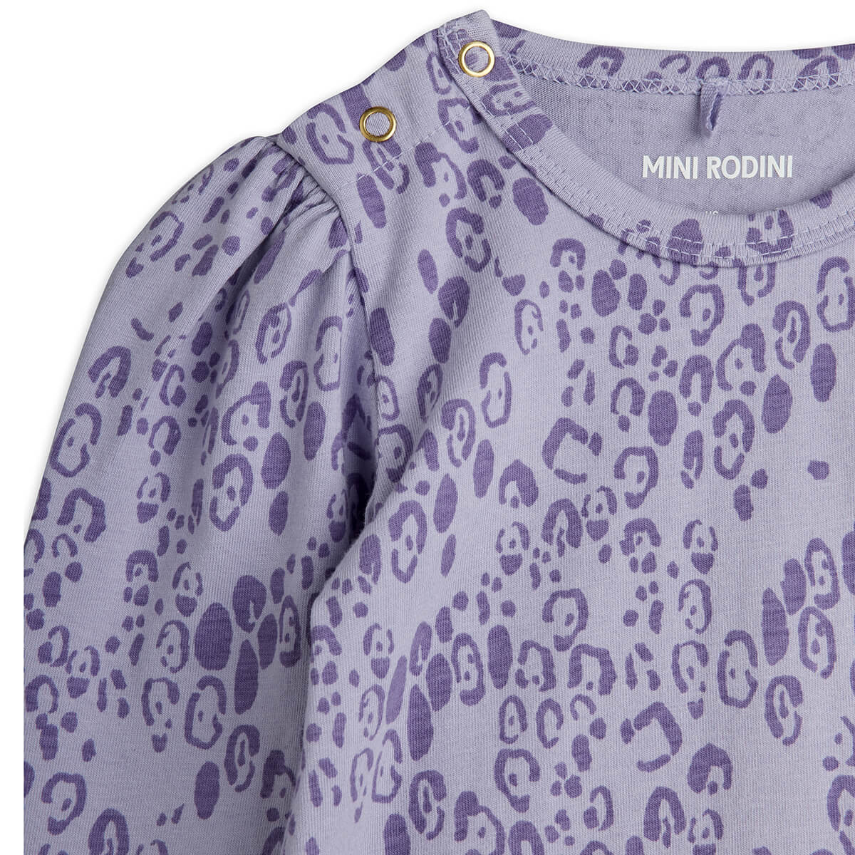 Mini Leopard AOP Baby Bodysuit in Purple by Mini Rodini