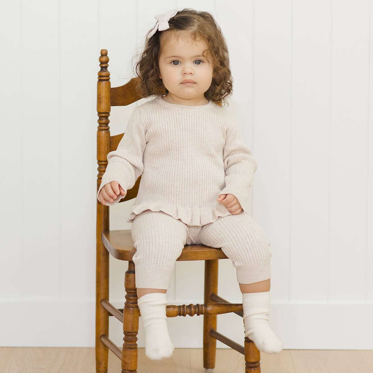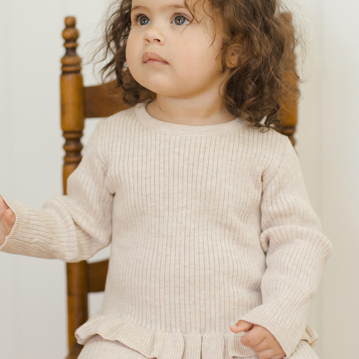 Rib Knit Peplum Top by Quincy Mae. A darling peplum top in a cosy ribbed knit. Pair with the coordinating rib knit leggings for the perfect everyday set.