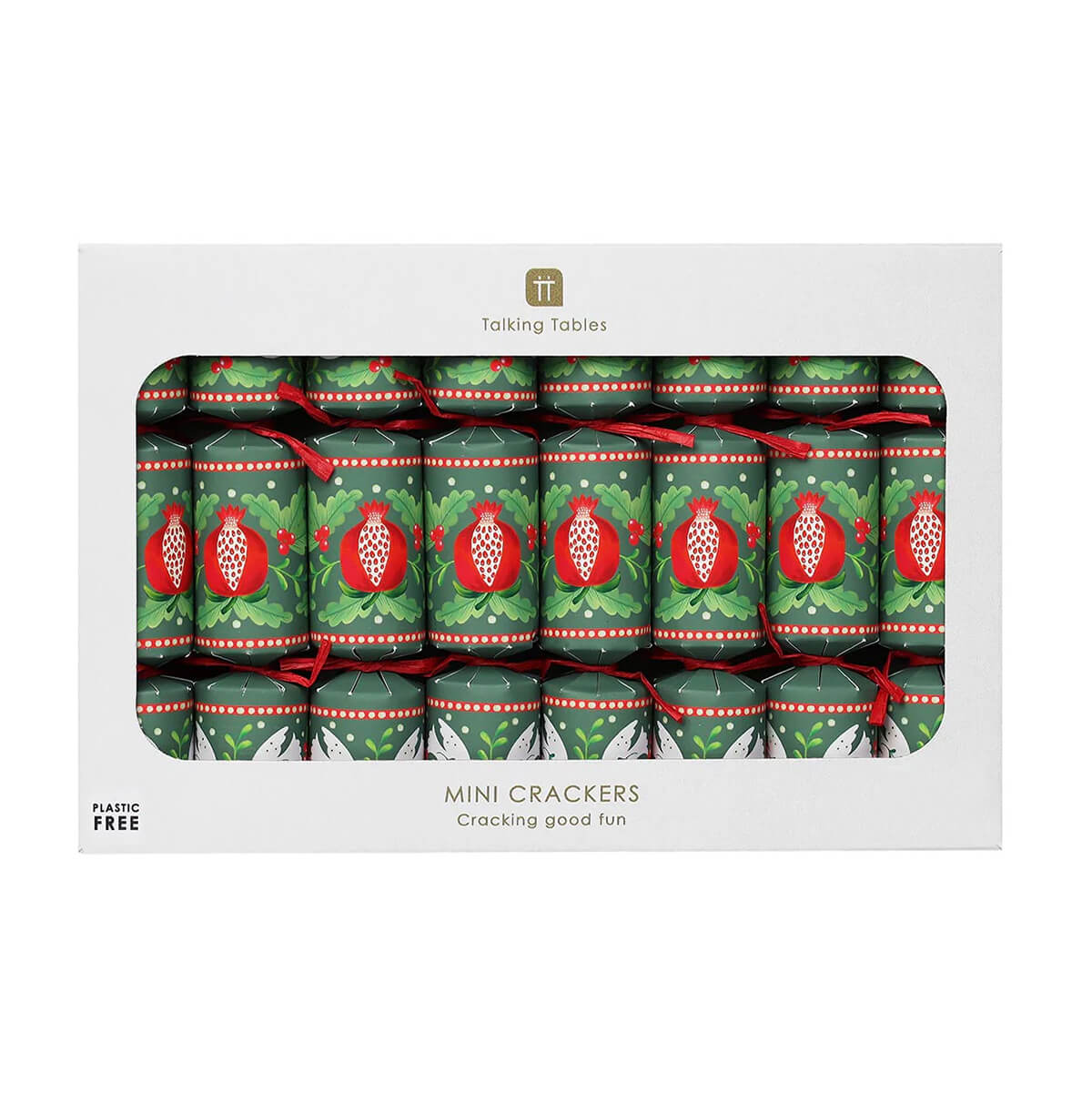 Folklore Mini Christmas Crackers by Talking Tables. Add luxury to your Christmas tables with these half-sized crackers in a classic Holly design. The crackers are plastic-free, recyclable and come in a pack of eight, ideal for larger family get-togethers. Don’t be deceived by the smaller size of these mini crackers, they come packed with fun and games to keep the table talking.